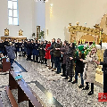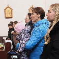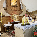 Пасля Вяночка да Божай Міласэрнасці распачалася святая Імша ў інтэнцыі ўсіх удзельнікаў пілігрымкі, дабрачынцаў і ахвярадаўцаў, якую ўзначаліў кс. біскуп Юрый Касабуцкі. Іерарх падзякаваў Богу за магчымасць сабрацца, айцам хрыстусоўцам – за арганізацыю пілігрымкі і ініцыятыву аплаткавай сустрэчы. “Гэта вельмі добра, што мы не абмяжоўваемся аднаразовай сустрэчай у пілігрымцы, але калі мы падтрымліваем кантакты, адносіны. Прайшло ўжо паўгады: мы можам нават падзяліцца сваімі ўражаннямі з перспектывы часу: як прайшла для мяне пілігрымка, якія плёны ёсць у маім жыцці?..” Закончылася малітоўная частка спевам “Каралева супакою”, які стаўся гімнам пілігрымкі 2022 года. Пілігрымы, як і летам, аб’яднаўшыся ў кола, праслаўлялі Божую Маці.