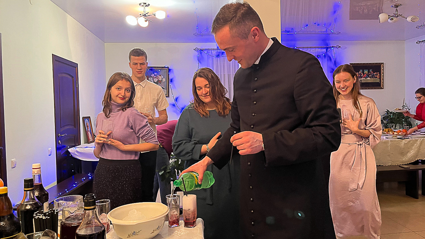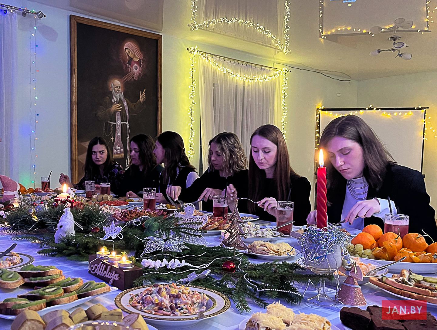 «Для мяне гэта было першае святкаванне Новага года ў касцёльнай супольнасці (тым больш — па-за сямейным колам), і я ні разу не пашкадавала, што правяла навагоднюю ноч разам з такімі цудоўнымі людзьмі! Кожны складнік мы падрыхтавалі ўласнымі рукамі, кожны нёс за штосьці адказнасць, і таму ўсе адчувалі сябе не проста гасцямі, але гаспадарамі для саміх сябе! Бадай, таму ў нас атрымаўся самы багаты стол і самы прыгожы пакой з самай святочнай атмасферай — у кожнай дробязі былі мы самі. Разам з намі быў ксёндз Уладзімір, і менавіта ён стаў агеньчыкам, які запальваў наш настрой сваімі ўсмешкамі, жартамі і найсмачнейшымі аўтарскімі кактэйлямі (без алкаголю)!» — дзеліцца Ксенія Харук.