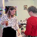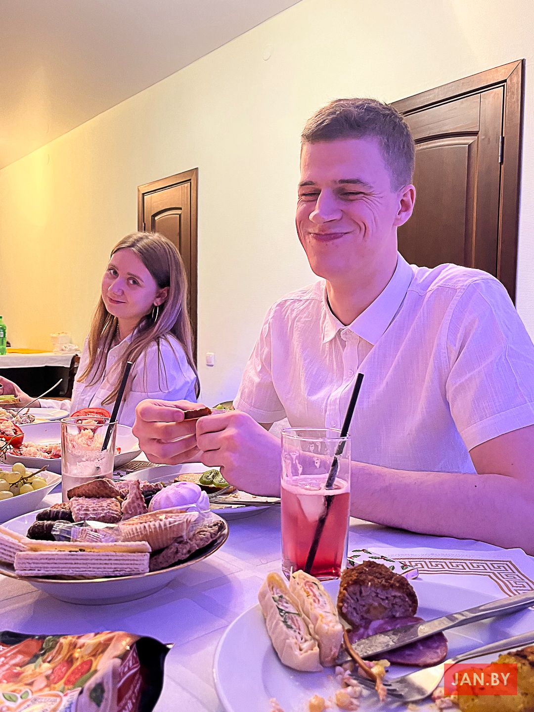 Потым моладзь вярнулася ў святочную залу, дзе быў Just dance і гучныя спевы. Крыху стомленыя, усе вярнуліся да стала. Пасля цяжкай працы ежа і насамрэч становіцца смачнейшай. Пасля танцаў таксама.