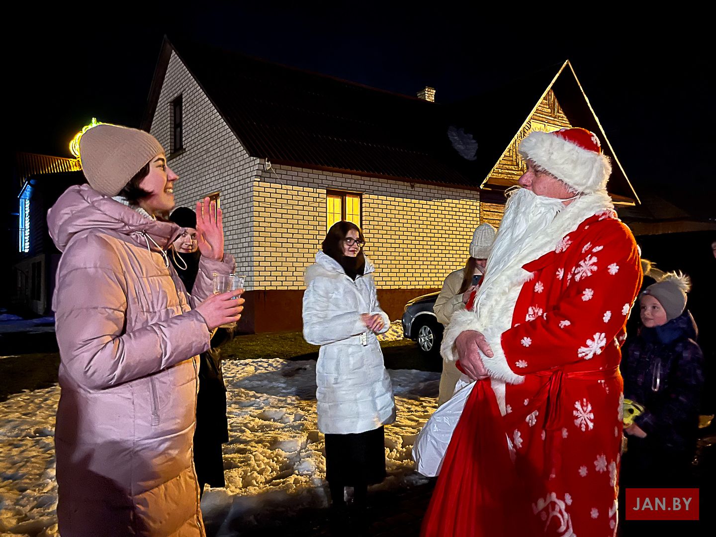 «Гэта мой чацвёрты Новы год з ДМХ. Калі мы разам яго планавалі, я не сказала тое, чаго моцна хацела на Новы год, бо тады хтосьці не адпачываў і святкаваў бы, а служыў іншым. Кагосьці прымушаць, каб спаўняў мае мары, я не хацела. А марыла я аб Дзядулю Марозе, бо для мяне ён такі ж самы элемент гэтага свята, як ёлка, гірлянда, падарункі, аліўе, мандарыны ды шампанскае. Але сама не ведаю, чаму так моцна захацелася яго менавіта ў гэтым годзе. Вось 00:00. Пасля званочкаў спяваем Te Deum, атрымліваем благаслаўленне і вяртаемся ў наш домік. А проста перад домам стаіць Дзядуля Мароз са Снягуркай і з падарункам, які я таксама вельмі хацела, як і яго самога», — дзеліцца Ганна Кабышава.