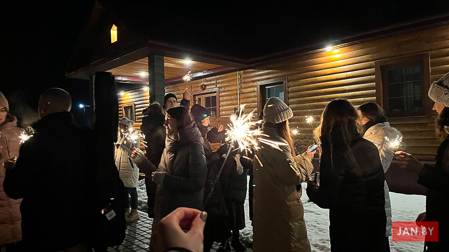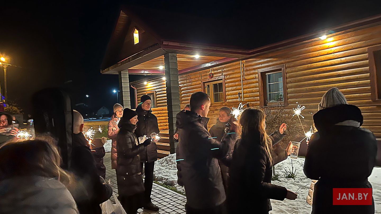 Далей моладзь далучылася да гасцінных жыхароў Тракеляў, каб перажыць першыя хвіліны новага года ў шумнай кампаніі.