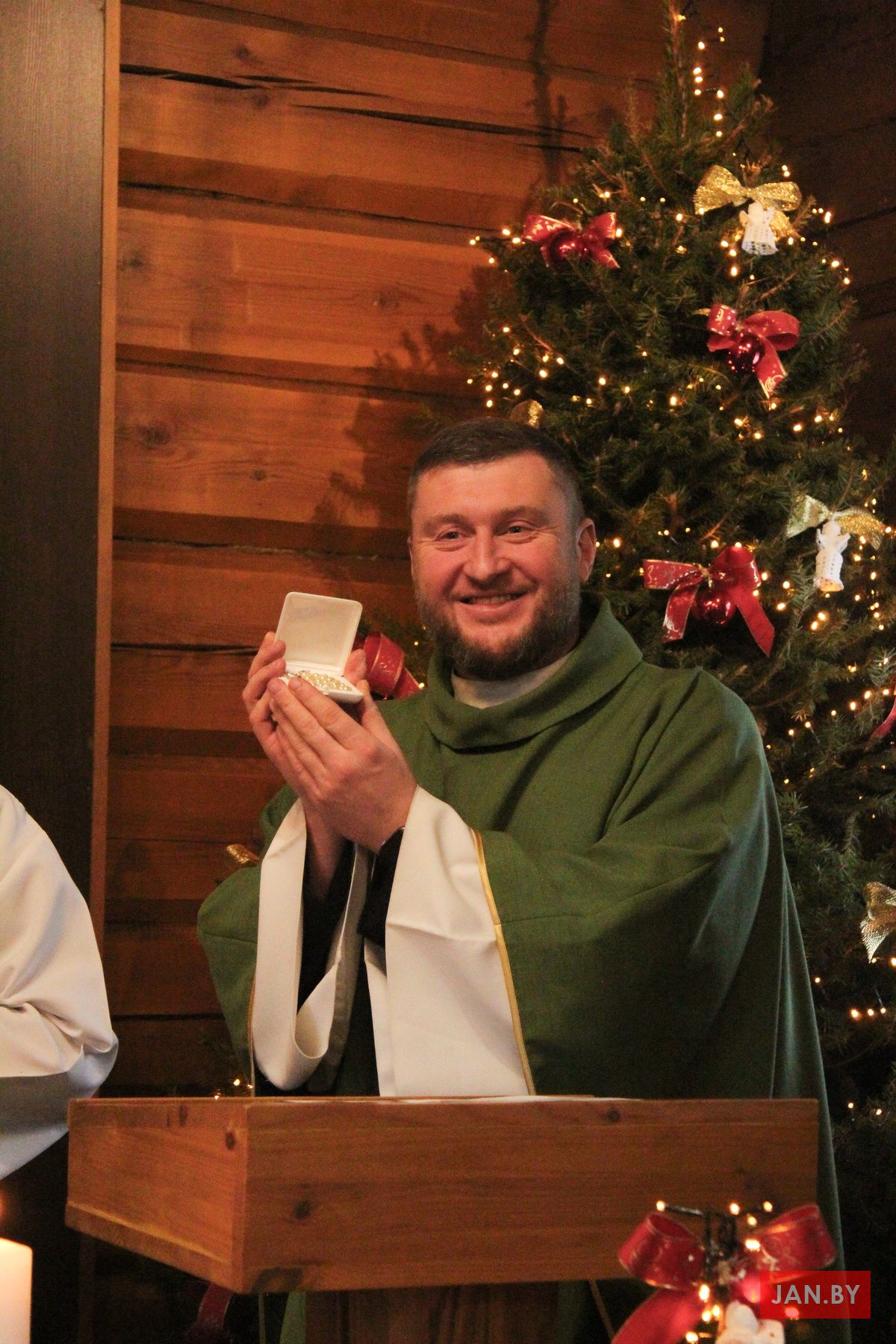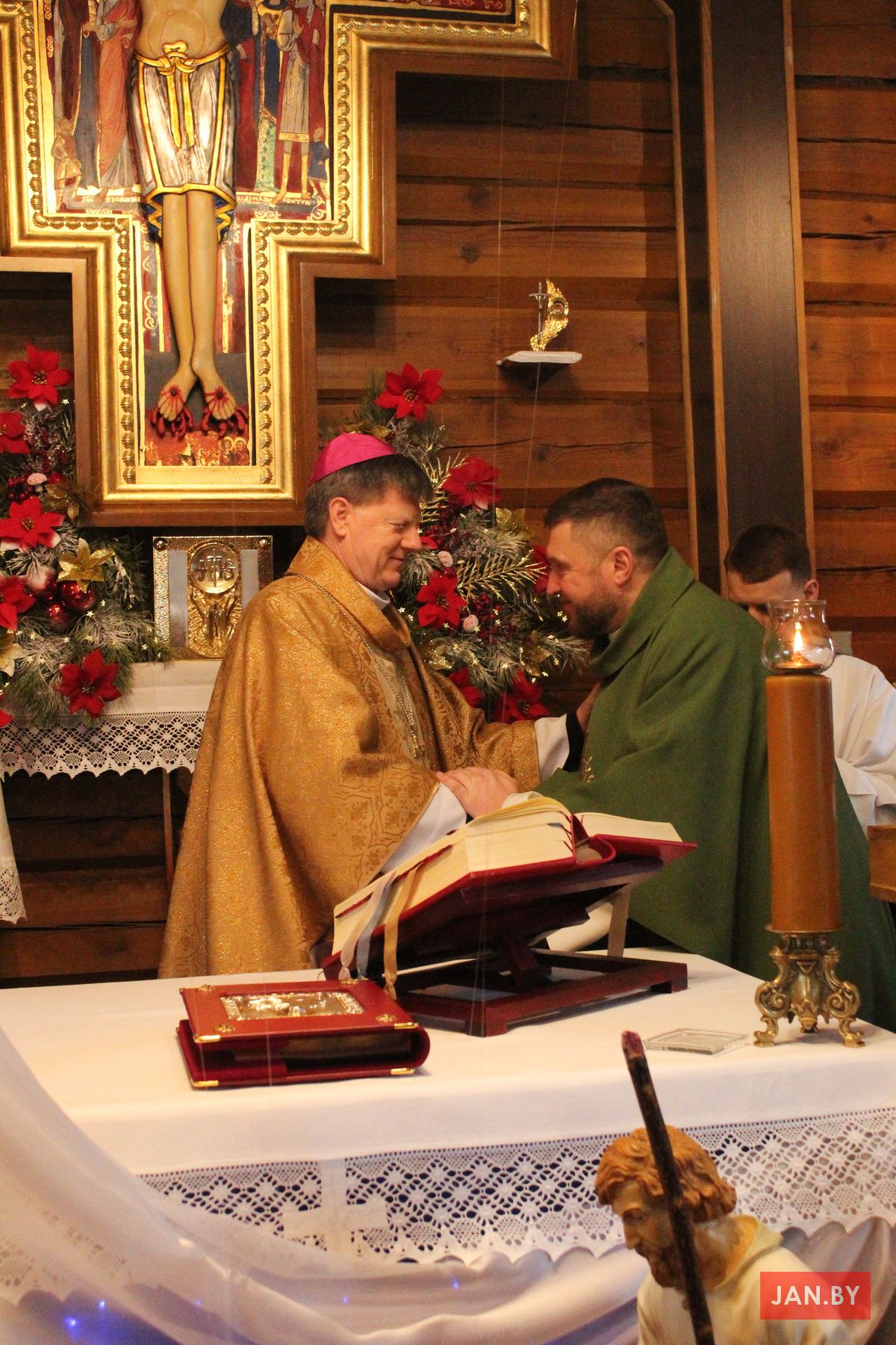 Напрыканцы Імшы Яго Эксцэленцыя падзякаваў айцу Алегу за запрашэнне і паабяцаў аказаць дапамогу ў справе будаўніцтва нашага касцёла, каб народ, асабліва маладыя людзі, маглі ўдзельнічаць у Літургіі ў вялікім новым будынку. У дадатак арцыбіскуп уручыў ксяндзу пробашчу незвычайны падарунак — ружанец ад Святога Айца Францішка — і ўдзяліў усім прысутным Апостальскае благаслаўленне.