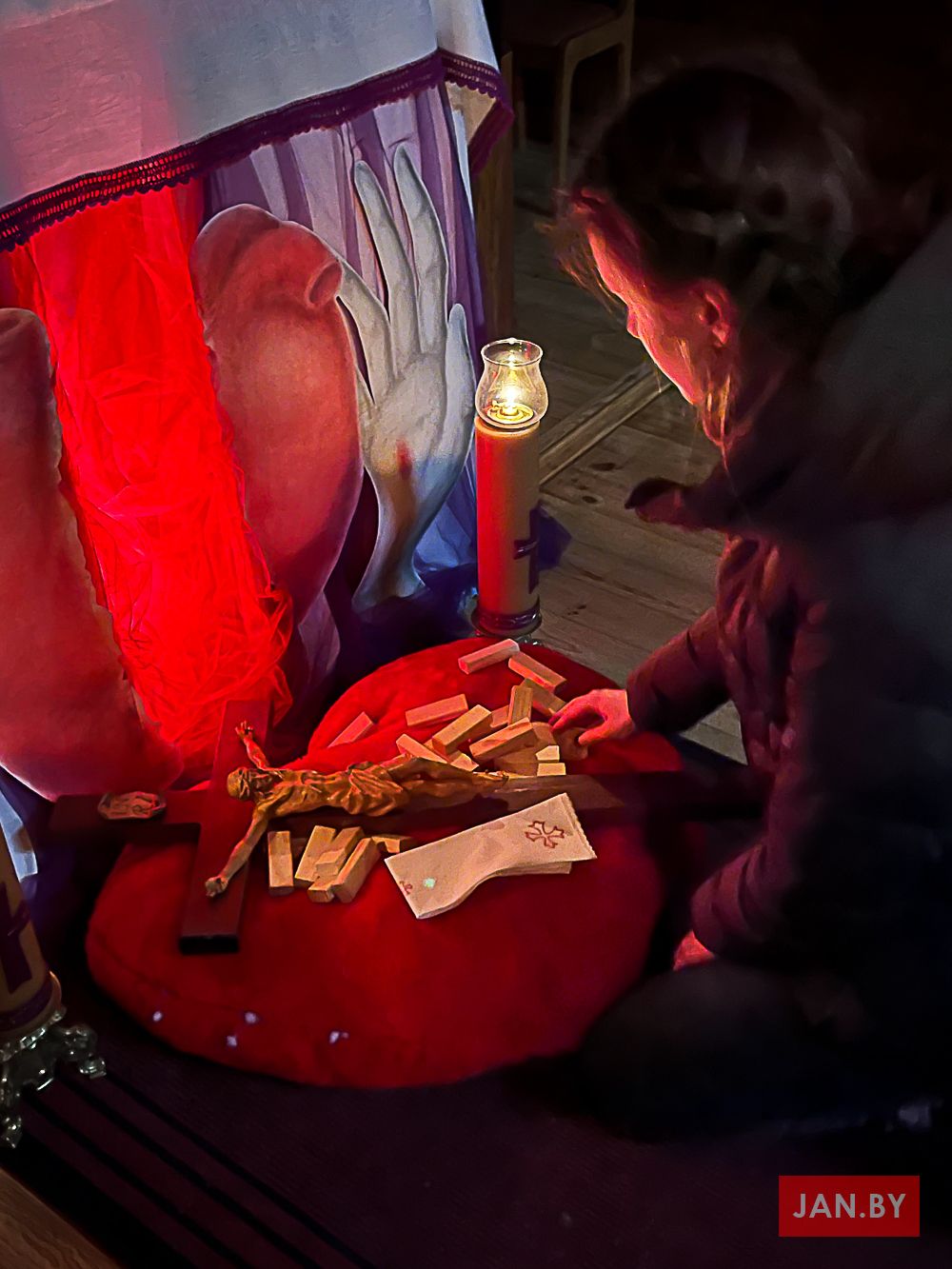 На набажэнства была запрошана ўся моладзь нашай парафіі. А ўдзельнікі ДМХ «Адзіныя сэрцам» узялі на сябе адказнасць па падрыхтоўцы разважанняў да Крыжовага шляху. Хтосьці знайшоў і ўзяў словы, якія адгукаліся ў яго сэрцы; хтосьці напісаў свае асабістыя думкі і хваляванні. Усе гэтыя словы суправаджалі Езуса падчас шляху на Галгофу. А ў моладзі была магчымасць заглыбіцца ў таямніцу апошняга дня жыцця Езуса, чэрпаючы з духоўнасці адно аднаго.