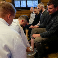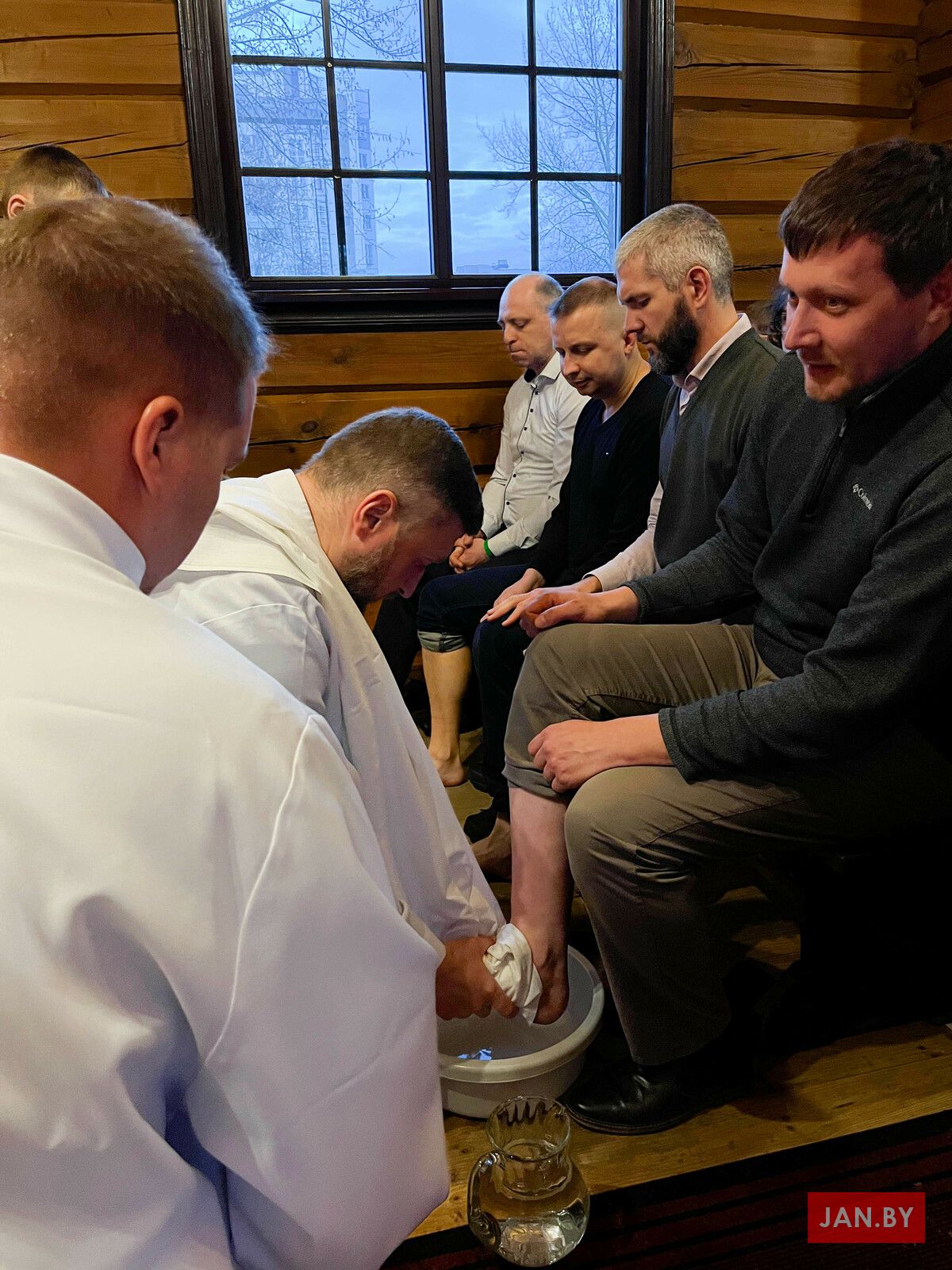 Пасля трохгадовага перапынку, звязанага з пандэміяй, быў здзейснены абрад абмывання ног. Яшчэ яго называюць Mandatum. «Бог настолькі любіць чалавека, што гатовы аддаць Сябе, гатовы стаць Слугою, — разважаў ксёндз Алег падчас Гаміліі. — Кожная Святая Імша з’яўляецца для нас місіяй, і гэта не проста пабожны ўдзел у Літургіі. Місія, з якой Бог рассылае нас, — "Кожны раз, калі будзеце есці гэты Хлеб і піць з гэтага келіха, абвяшчайце смерць Пана, пакуль Ён не прыйдзе" (1 Кар 11, 26), — кожны раз аднаўляецца. Сёння мы чытаем, што Езус схіляецца над сваімі вучнямі, каб абмыць ім ногі. З Евангелля паводле Лукі мы ведаем, што Езус Хрыстус у Небе будзе служыць. Ён гэта здзяйсняе тут і цяпер. Важна, каб мы гэту праўду прынялі і перажылі. Гэта праўда нам вельмі патрэбна, каб быць паслухмянымі той місіі, аб якой кажа Езус Хрыстус. Ідзіце і вы так чыніце, ідзіце і вы абмывайце, ідзіце і вы схіляйцеся над чалавекам у патрэбе, над тым, хто сёння церпіць, над тым, хто вас патрабуе.