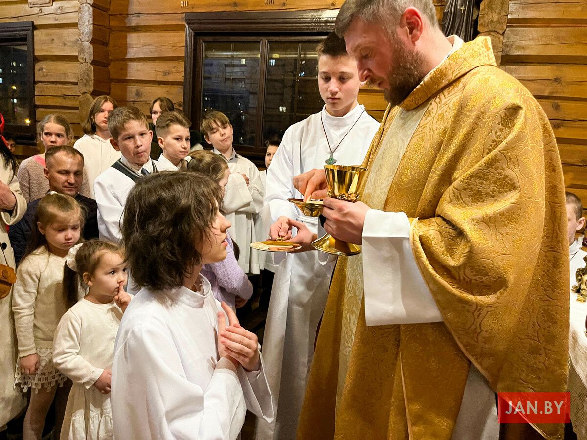 Найбольш засяроджанымі стараюцца быць вернікі ў момант прыняцця Святога Цела Хрыста, асабліва ў Вялікі чацвер — дзень устанаўлення сакрамэнта Эўхарыстыі Езусам Хрыстом на Апошняй Вячэры. У парафіяльнай супольнасці ў такі важны і літургічна багаты дзень была яшчэ адна нагода для радасці. Ксенія Харук, маладая парафіянка, пасля адпаведнай падрыхтоўкі першы раз у жыцці прыняла Найсвяцейшы Сакрамэнт у сваё сэрца.
