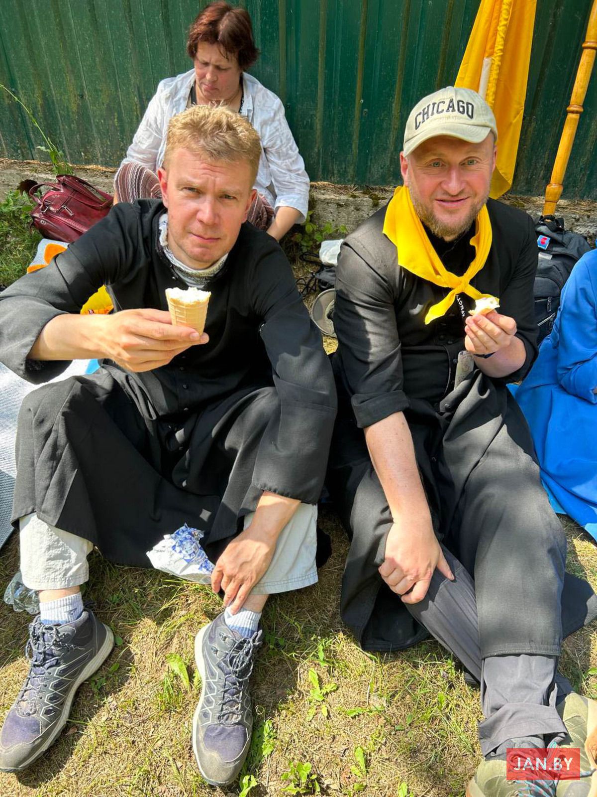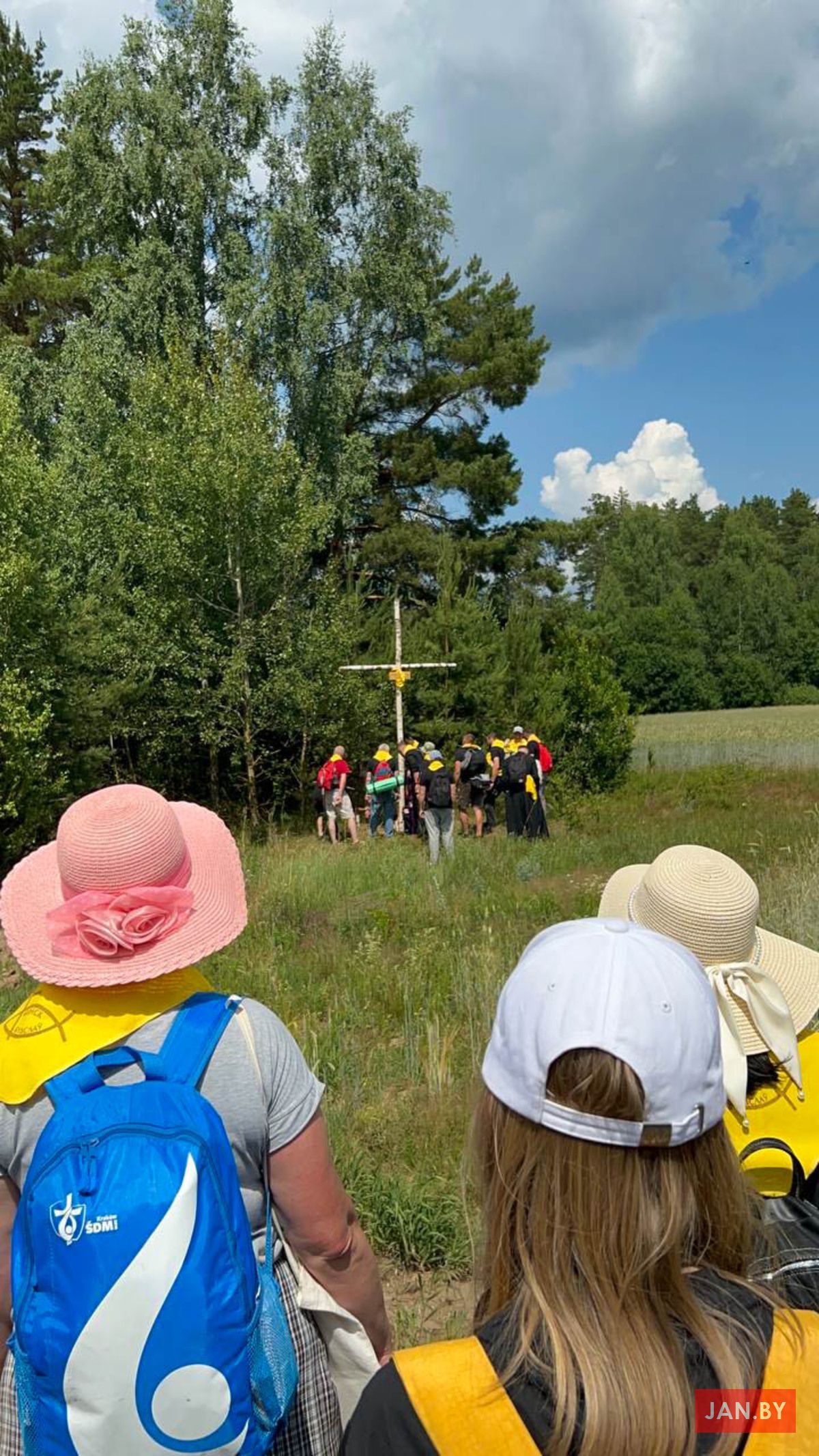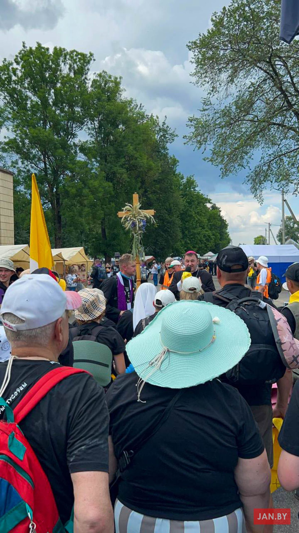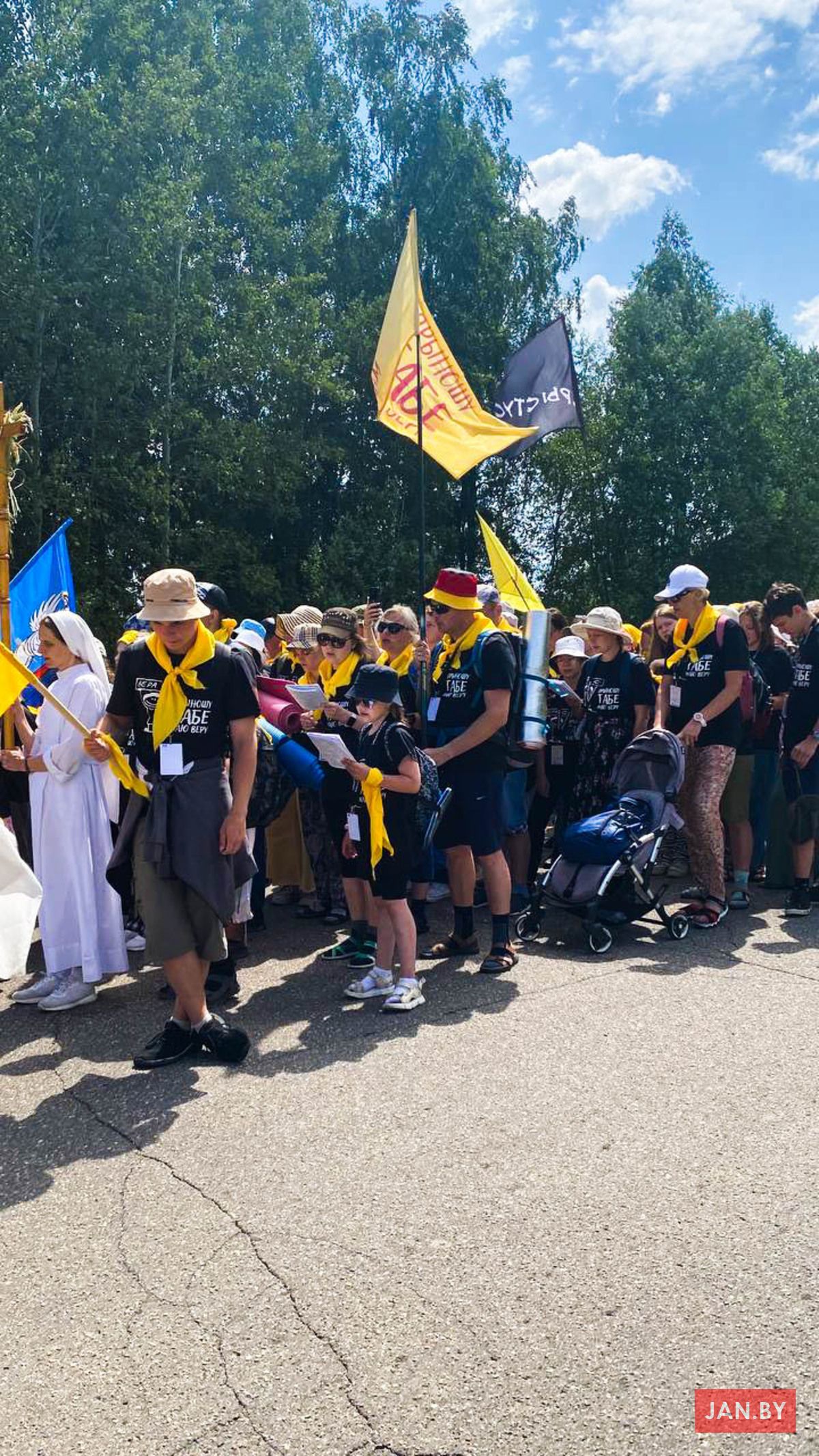 «Мой панядзелак распачаўся са Святой Імшы ў архікатэдры — гэта традыцыйны парадак першага дня мінскай пешай», — хацела напісаць я. Але мая раніца пачалася з патопу ў ваннай з-за пральнай машынкі. Час ляцеў хутка, была рызыка спазніцца на Святую Імшу. Мімалётна нападалі думкі аб тым, што лягчэй было б адмовіцца ісці першы дзень, або нават цалкам пілігрымку. Вядома, усё гэта было спакусай. Настрой не сапсаваўся. Я дазбірала рэчы, выклікала таксі і прыбыла ў касцёл, дзе сабралося шмат пілігрымаў у жоўценькіх хустачках. Думкамі пра тое, чым ёсць пілігрымка, падзяліўся падчас казання біскуп Юрый Касабуцкі. Яго Эксцэленцыя падкрэсліў, што наша мэта, Будслаў, — святое месца і што мы ідзём у Імя Божае. Пілігрымка — гэта наш высілак, наш ахвяраваны час, але толькі маленькі крок у духоўным жыцці. І каб духоўна перажыць пілігрымку, трэба абраць інтэнцыю на ўвесь шлях.