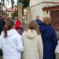 Пасля смачнага абеду мы вырушылi далей у дарогу на Пiнск. У сталіцы Палесся мы наведалi старажытную катэдру i будынак семiнарыi, прагулялiся па вулiцах горада, патаньчылi на цэнтральнай плошчы, паспявалi з мясцовымi музыкамi, а нават павячэралi разам з бiскупам Антонiям Дзям'янка.