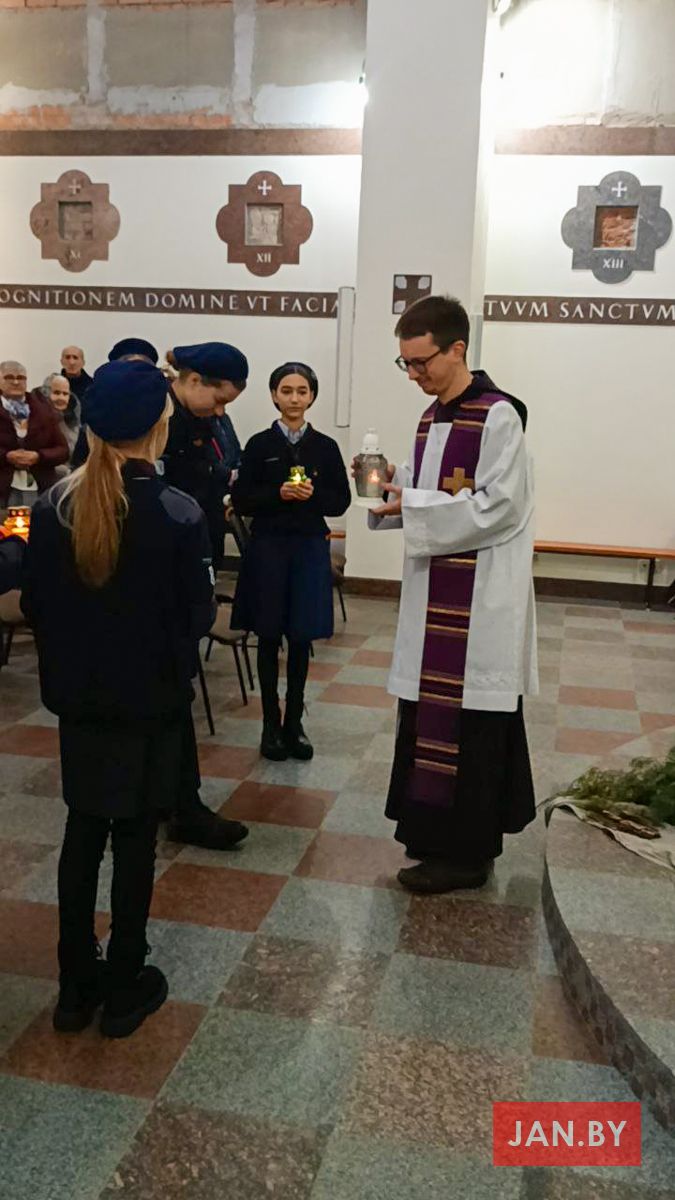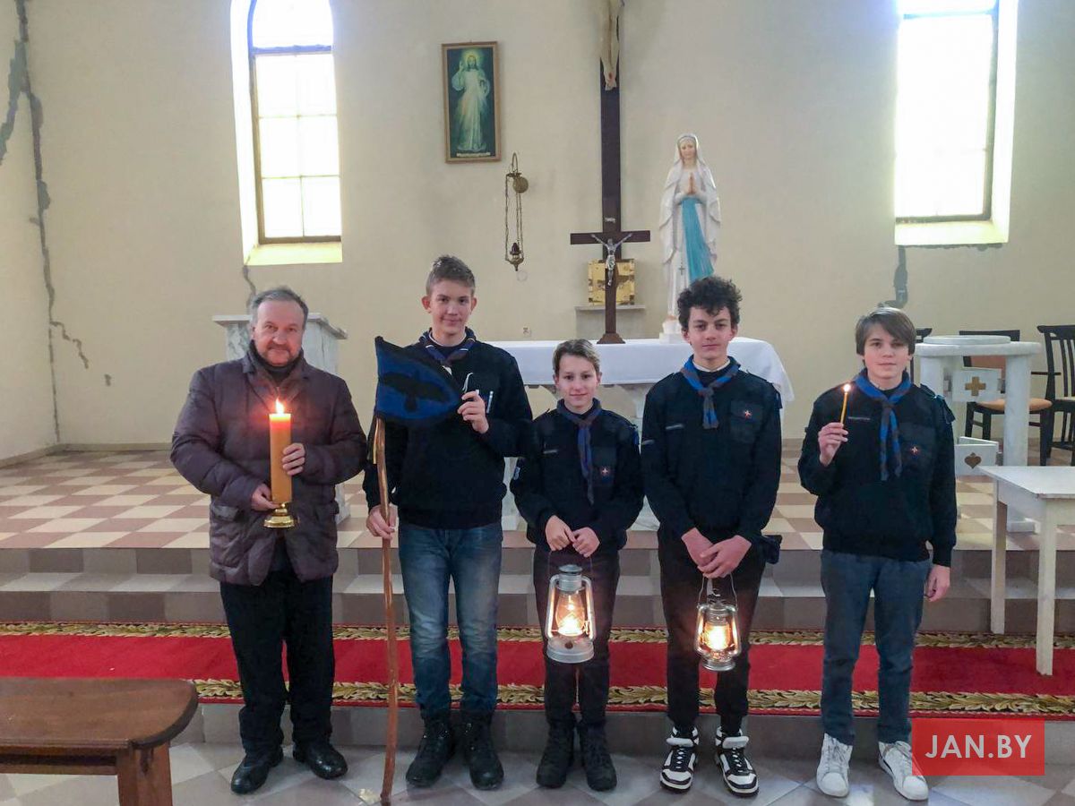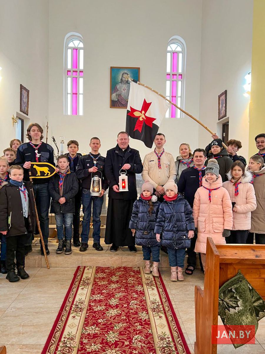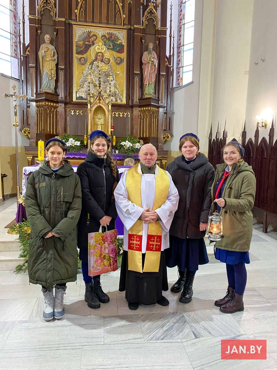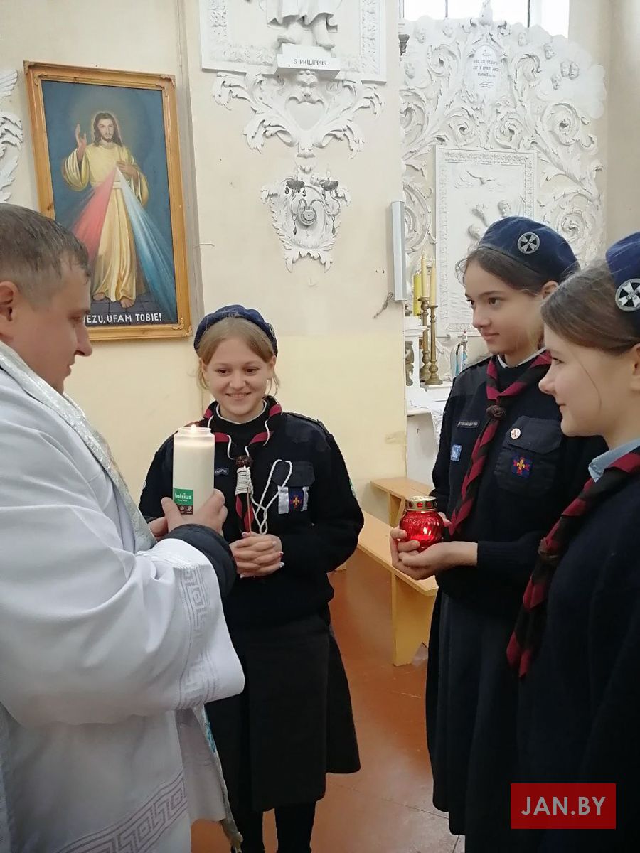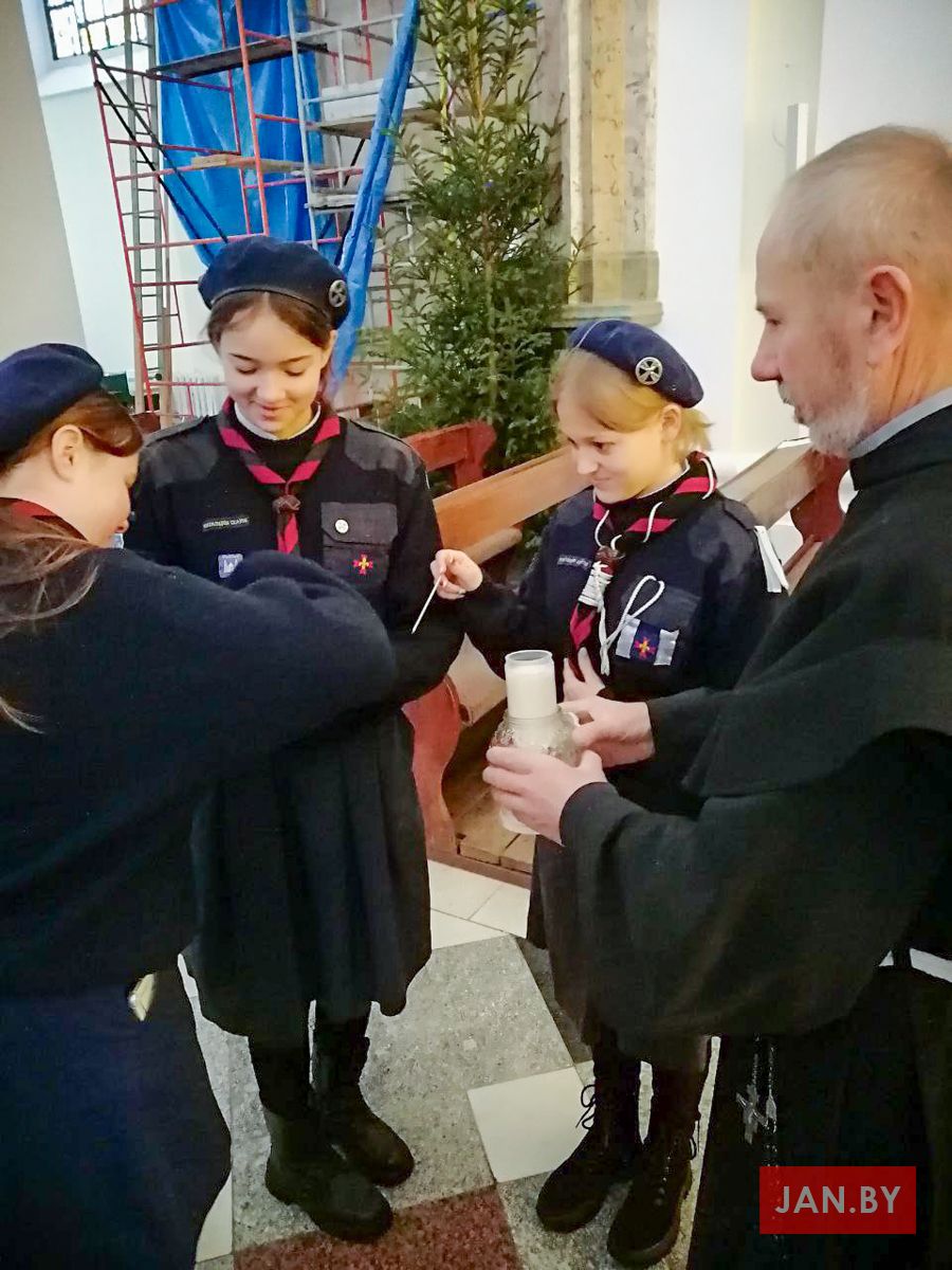 На мінулых выходных каталіцкія скаўты і скаўткі развозілі Бэтлеемскі агонь супакою па парафіях Беларусі. Скаўцкая супольнасць нашай парафіі прыняла ў тым непасрэдны ўдзел.