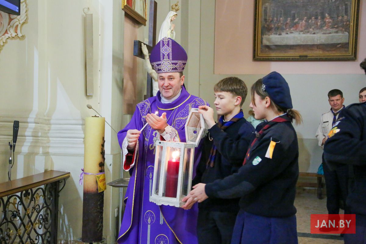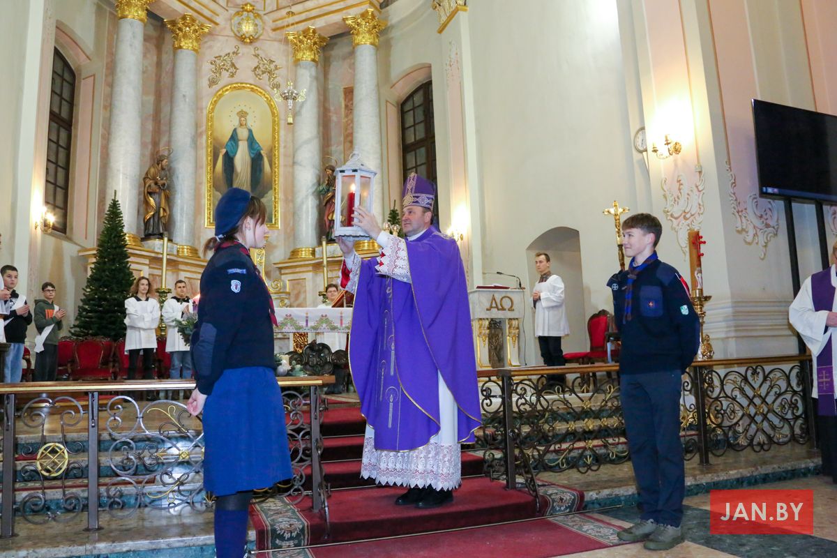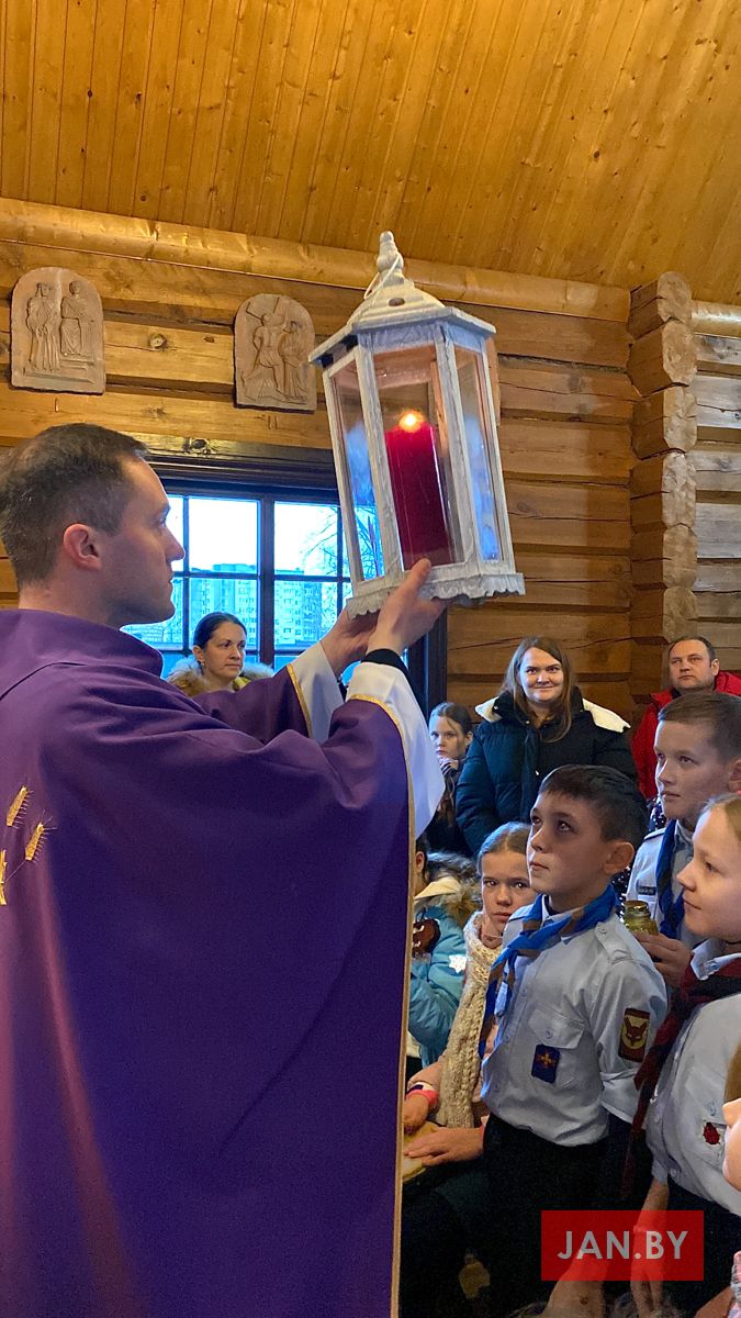 У нядзелю мэтамі развозу былі парафіі мінскіх дэканатаў. А ў нашую парафію Бэтлеемскі агонь традыцыйна ўносілі Ваўчаняты і Божыя кароўкі.
