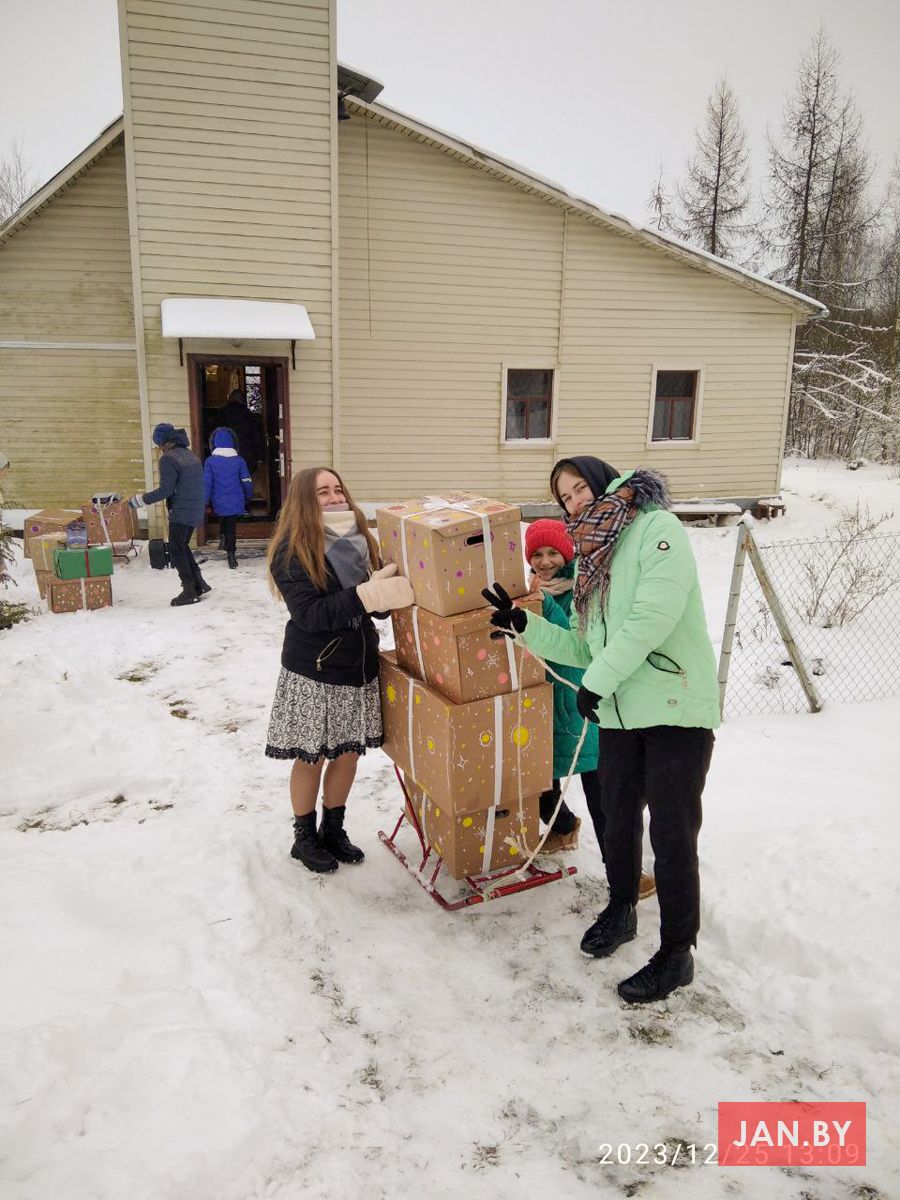 Трываючы ў актаве Урачыстасці Божага Нараджэння, ад імя дзяцей і іх бацькоў шчыра дзякуем за дар вашых сэрцаў, за вашыя намаганні, каб сабраць падарункі дзецям парафіі св. апостала Тамаша і св. Яна Боска ў вёсцы Мішкавічы Шумілінскага раёна Віцебскай вобласці.