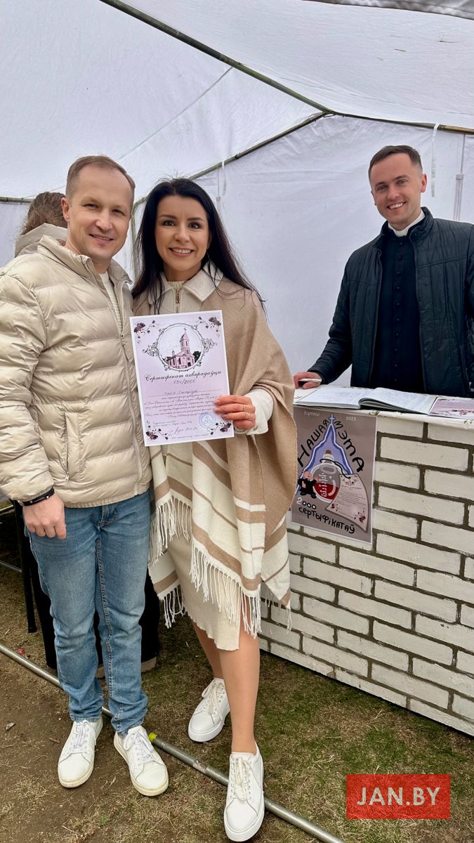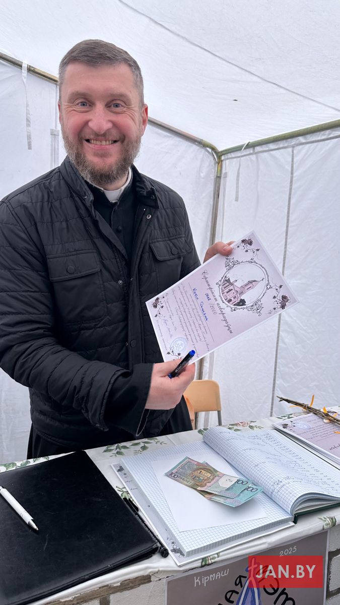 Усе грошы з продажу будуць накіраваны на патрэбы будовы парафіяльнага касцёла. Таксама за цэлы дзень было набыта 55 сертыфікатаў на квадратны метр сценаў касцёла, які мы будуем.