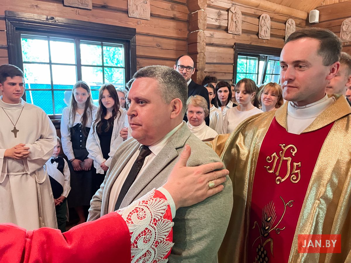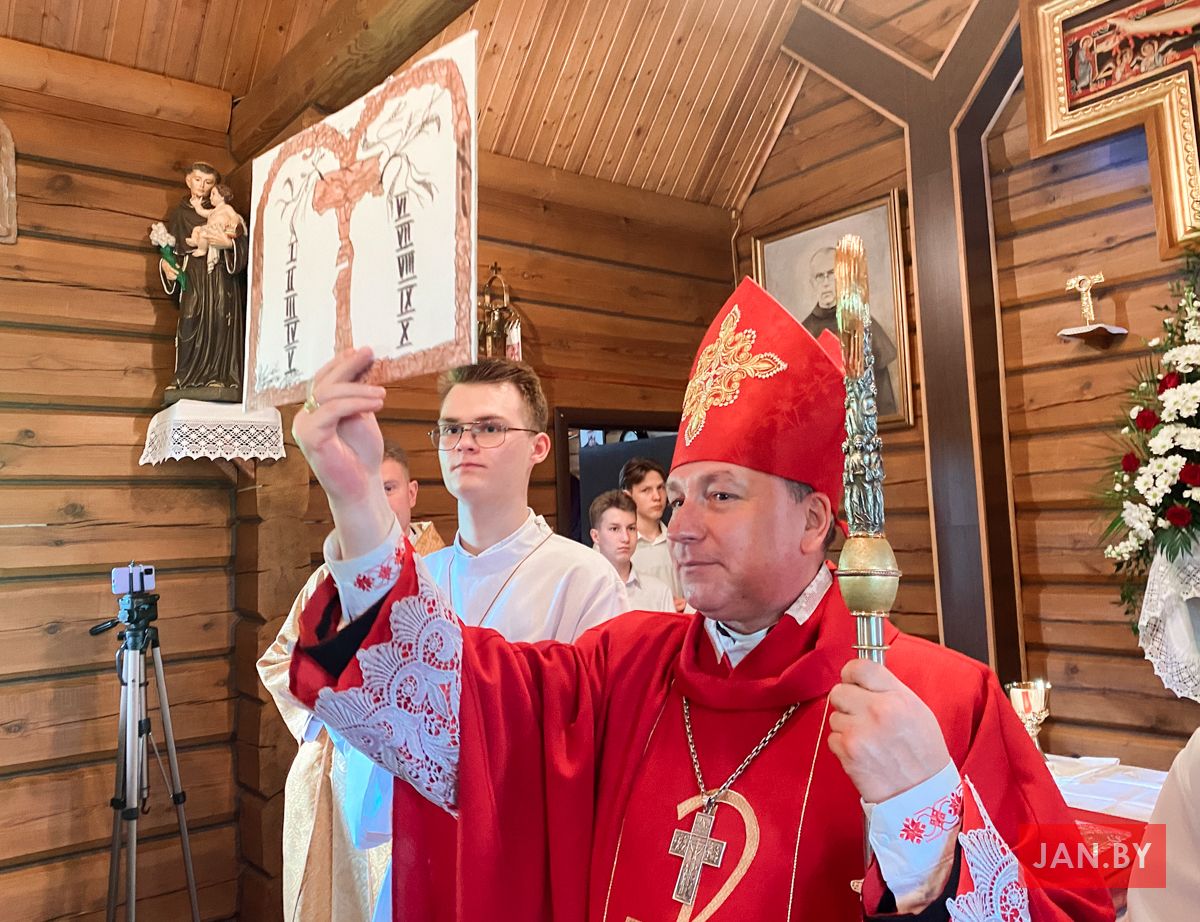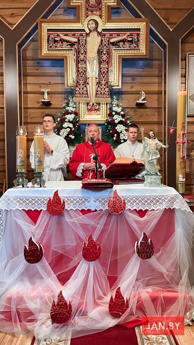 Дарагія парафіяне, шаноўныя госці, вельмі шчыра дзякуем усім, хто сапраўды стварае, стварыў гэтую нашую Літургію, урачыстасць. Дзякуй перш за ўсё ксяндзу біскупу. Ваша Эксцэленцыя, дзякуй за паслугу Касцёла, за той жывы знак еднасці, паўнаты Божага Духа, прысутны ў гэтай канкрэтнай нашай парафіі. Мы вельмі ўдзячныя, што праз Вашыя рукі, праз Вашую паслугу Дух Святы напоўніў сапраўды моцай Духа Святога тых, хто адкрыў сёння сваё сэрца. Дзякуем Вам і жадаем, каб гэтая паўната Духа, якую носіце ў сэрцы сваім, Вас вяла да Пана Бога, але таксама Вашым служэнні іншых людзей заахвочвала да пазнання Хрыста і да большай любві да Яго. Дзякуй, што Вы ёсць, і заўсёды вельмі-вельмі сардэчна запрашаем у нашую парафію.