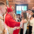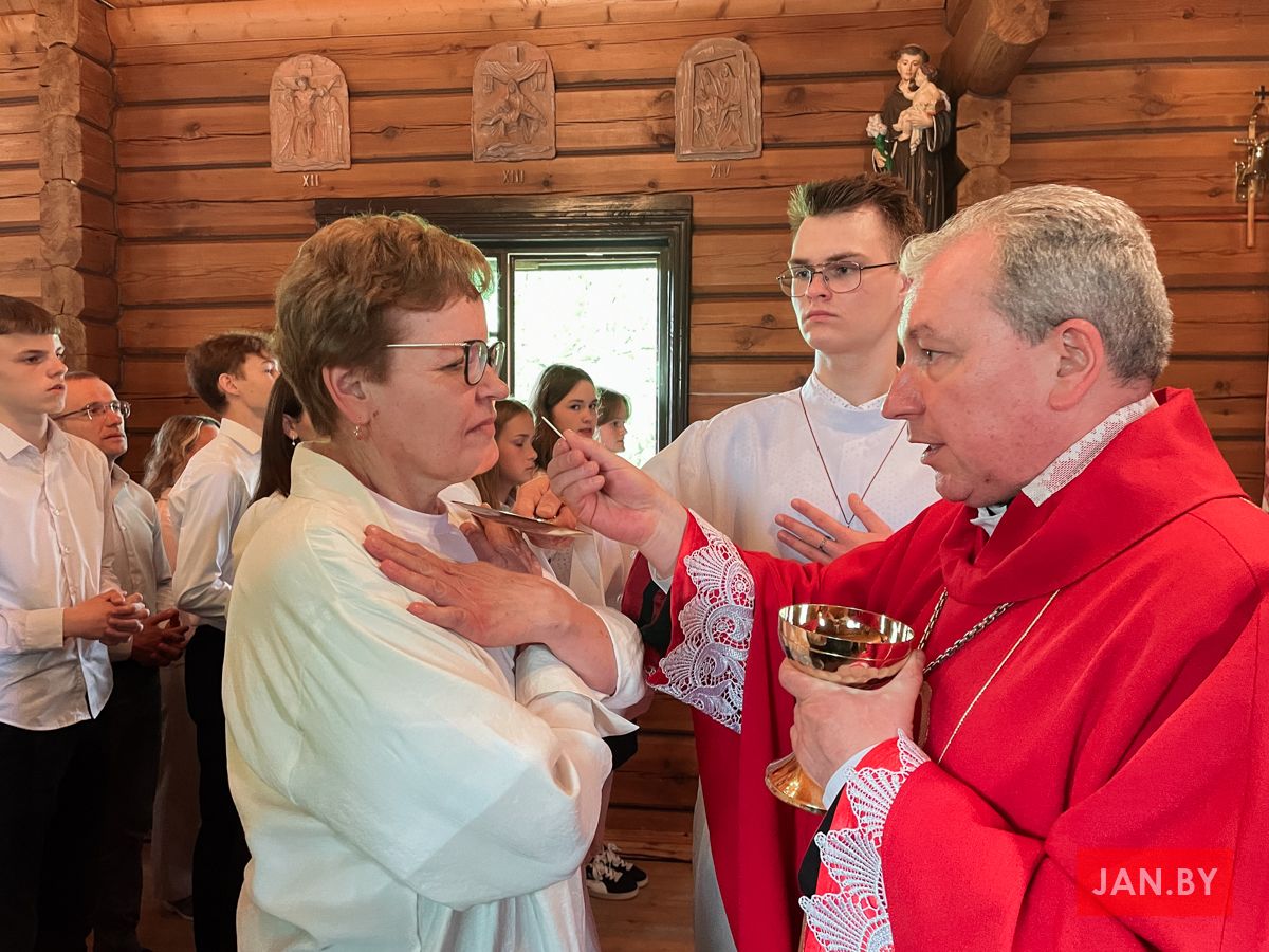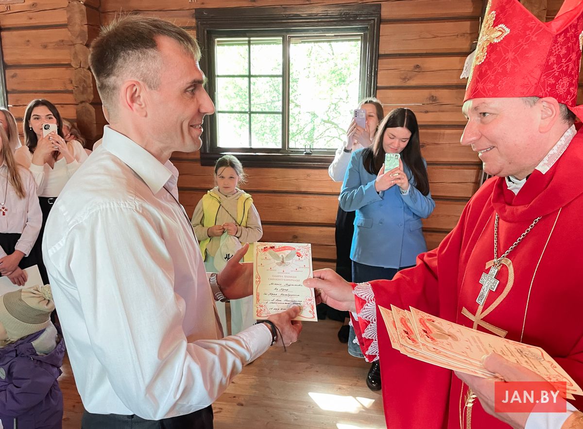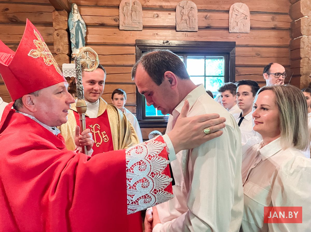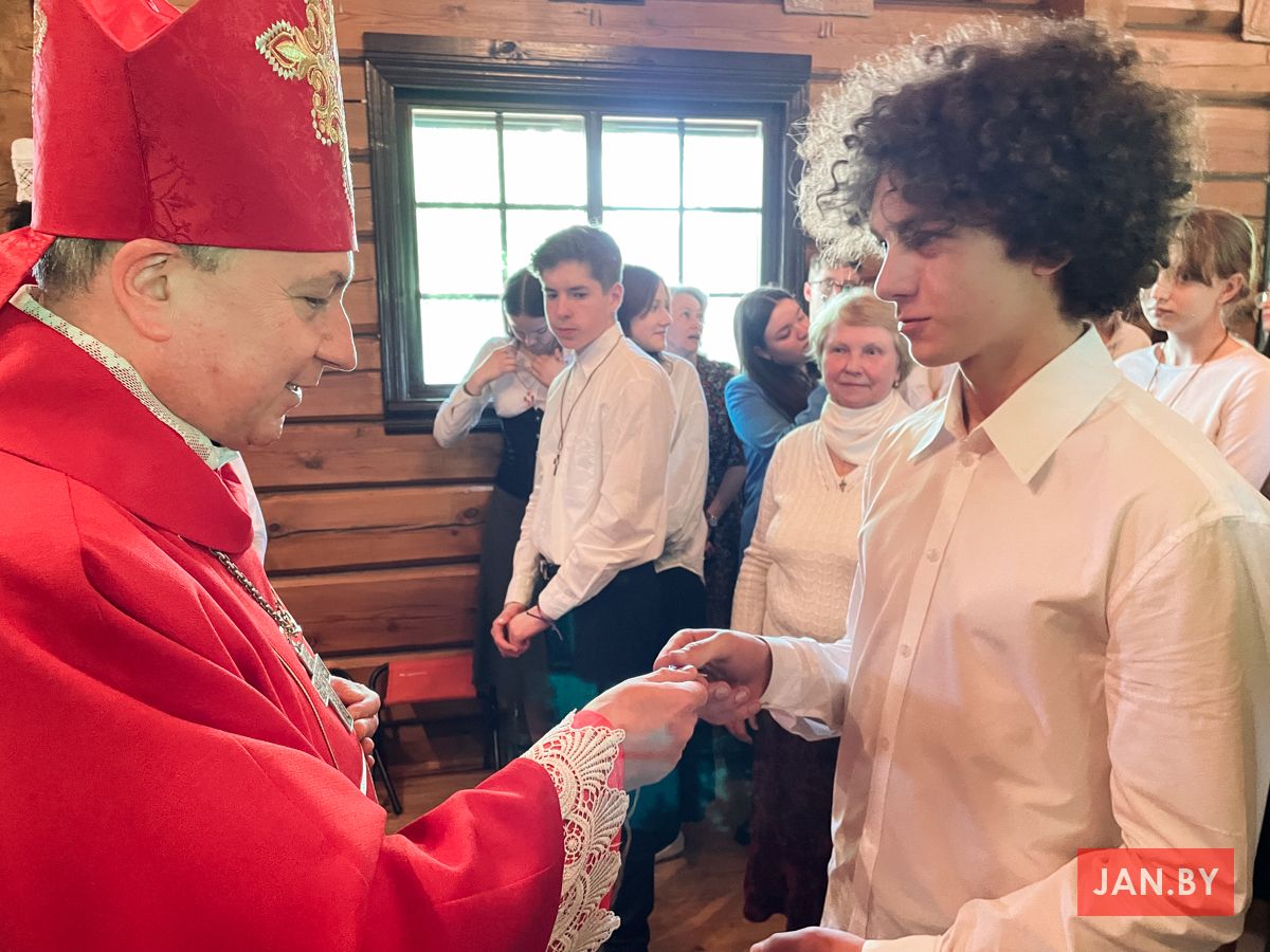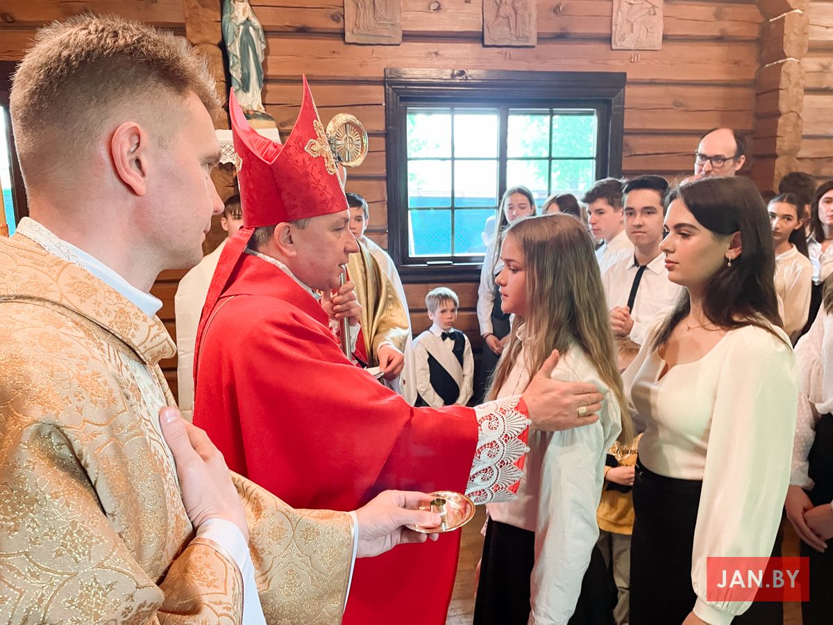 Вам, дарагія бежмаваныя, дарагая моладзь, вельмі дзякуй за тое, што вы такія прыгожыя, адкрытыя, што вы выбралі, гэта ваш выбар. Ваш выбар напоўніць сябе дарамі Духа Святога, адкрыць сваё сэрца. І гэта сапраўды вельмі важна і сапраўды прыгожа. Жадаем, каб усе вы выстаялі. Гэта невыпадкова, што мы лаўкі выносілі: каб вы выстаялі да канца жыцця ў сваёй веры. Не будзе лёгка, будуць розныя буры, перашкоды, але памятайце, што Бог заўсёды блізка, Ён з вамі, Ён у вашых сэрцах, і адтуль сапраўды чэрпайце ўсе сілы, каб любіць Пана Бога і сведчыць пра Яго. Вельмі сардэчны вам дзякуй.