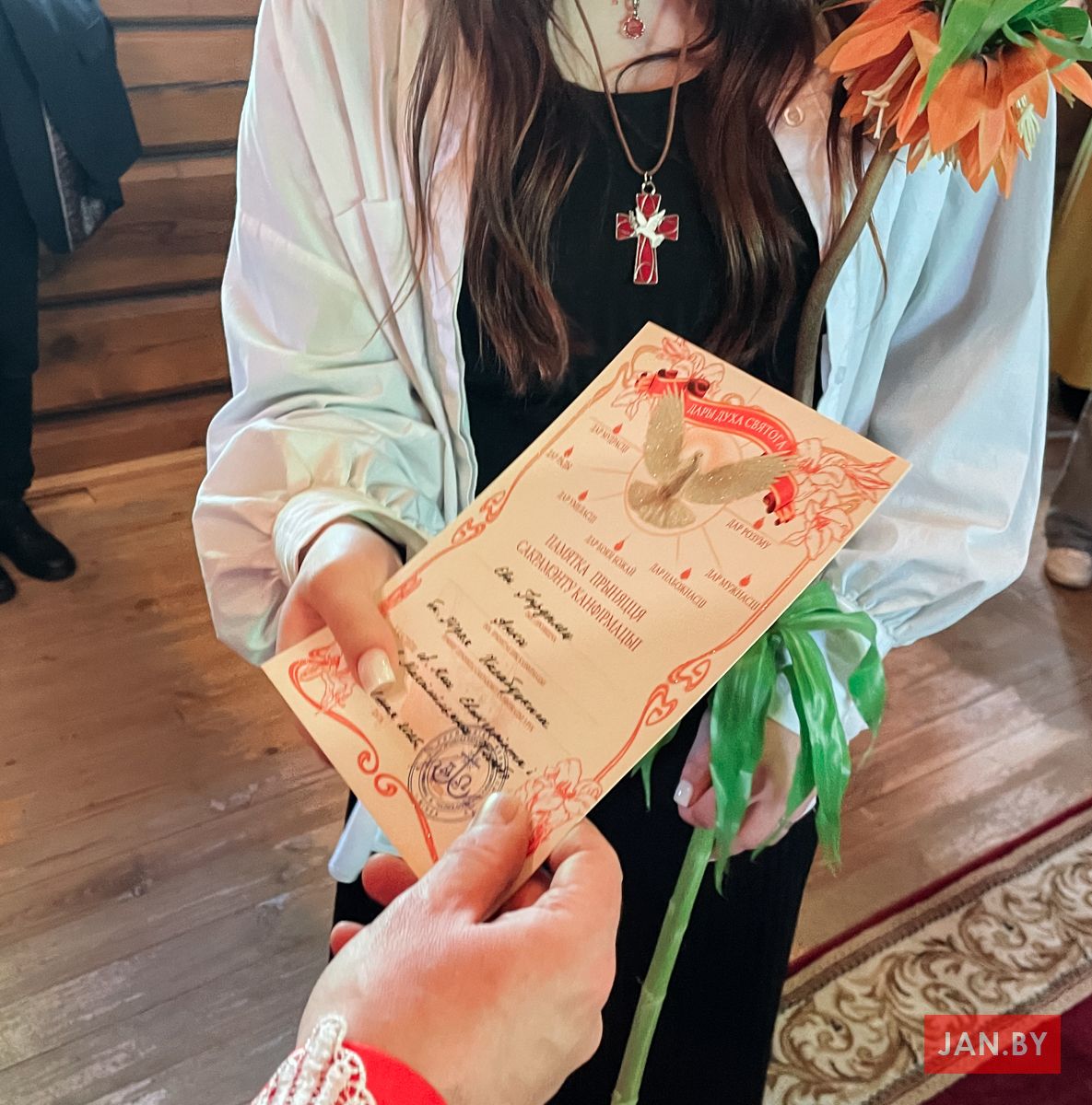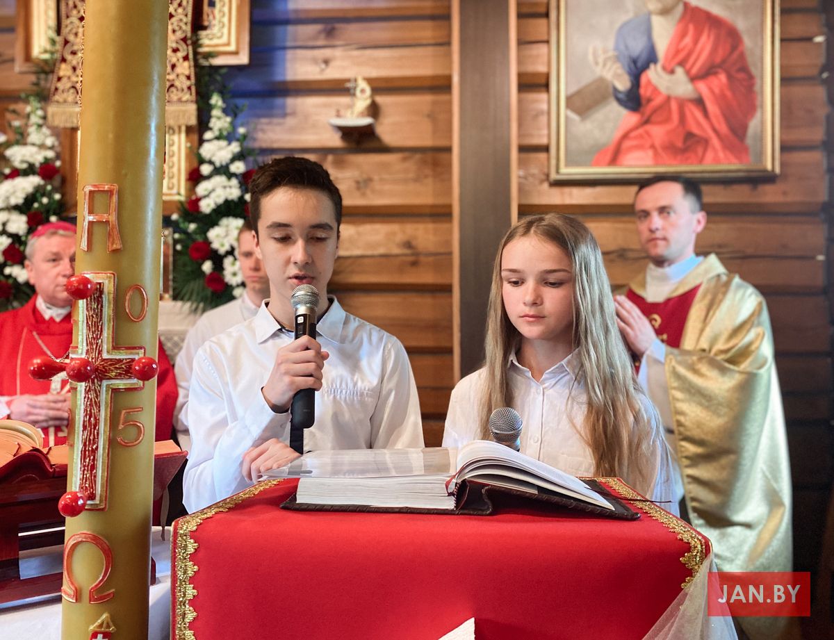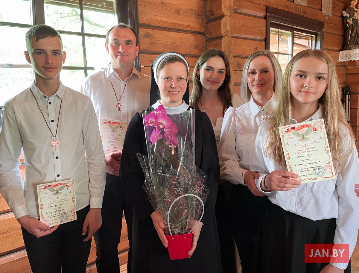 Яшчэ сёння мы хочам падзякаваць нашым дарагім святарам і любым сёстрам за падрыхтоўку да сакрамэнту Канфірмацыі і нашых дзяцей, і дарослых. Дзякуй вам, даражэнькія, за вашу духоўную падтрымку, за вашыя малітвы, за вашае цярпенне, за вашыя мудрыя парады, за вашае адкрытае сэрца, сапраўды, за вашую заклапочанасць пра нас — не толькі дзяцей, але і дарослых. Няхай вашая праца на ніве Пана прыносіць шчодры плён і дапамагае нам усім у дарозе да святасці. Шчасця вам Божага (?).