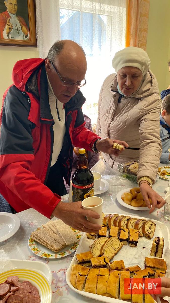 Пасля заканчэння Святой Імшы прысутныя падсілкаваліся абедам. Гэта быў час для супольных размоў, дзе панавала вельмі цёплая атмасфера, нягледзячы на даволі халоднае надвор’е.