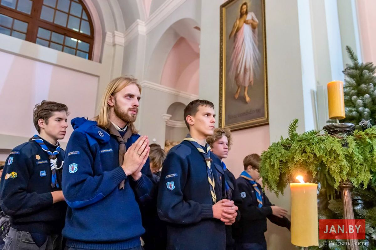 У пятніцу, 19 снежня, перад Святой Імшой Бэтлеемскі агонь быў урачыста ўнесены прадстаўнікамі скаўцкіх адзінак нашай парафіі ў мінскі Архікатэдральны касцёл Імя Найсвяцейшай Панны Марыі, дзе быў перададзены ў рукі ксяндза-біскупа Юрыя Касабуцкага, Генеральнага вікарыя Мінска-Магілёўскай архідыяцэзіі.