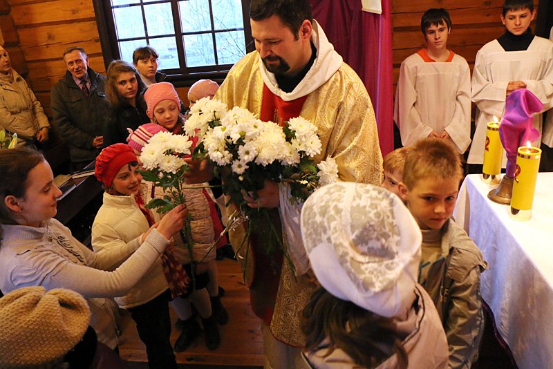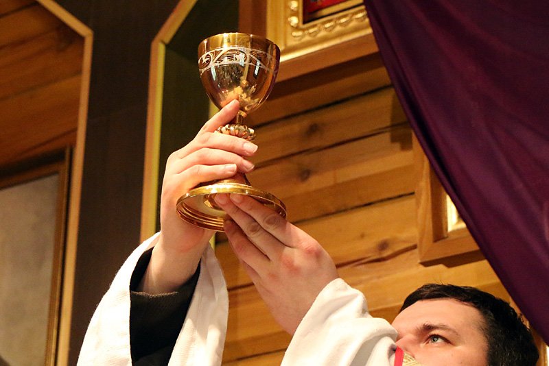 Вечарам у Вялiкi чацвер усе вернiкi збiраюцца разам са сваiмi душпастырамi, каб ушанаваць Апошнюю Вячэру ў часе ўрачыстай святой Iмшы. У евангельскім чытанні гэтай Iмшы гаворыцца пра абмыванне ног Апосталам (Ян 13, 1–15). Узаемная любоў павiнна быць умоваю i плёнам Эўхарыстыi.