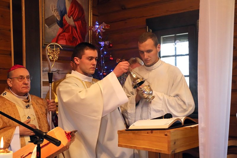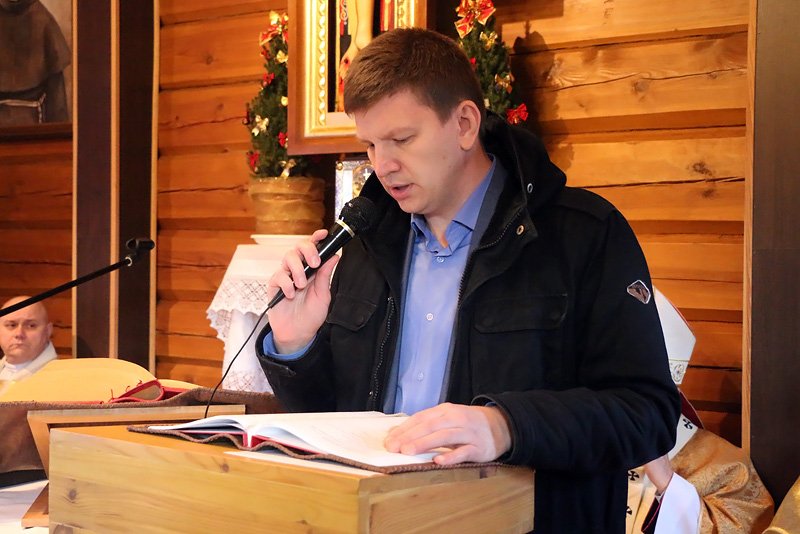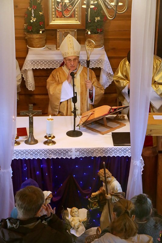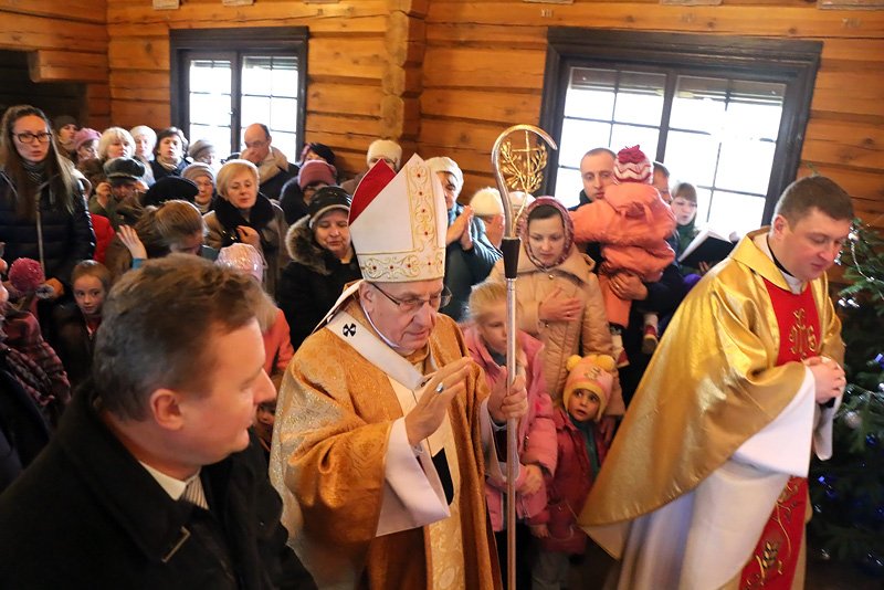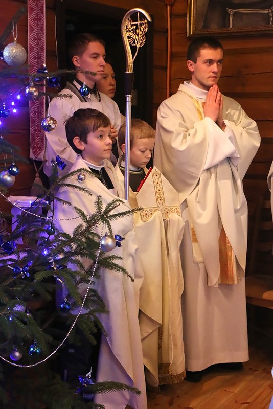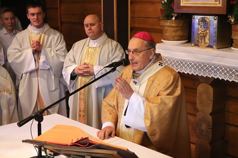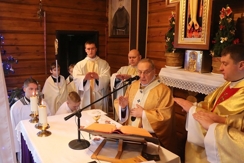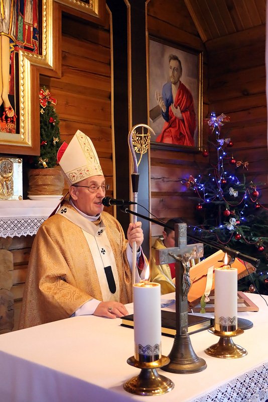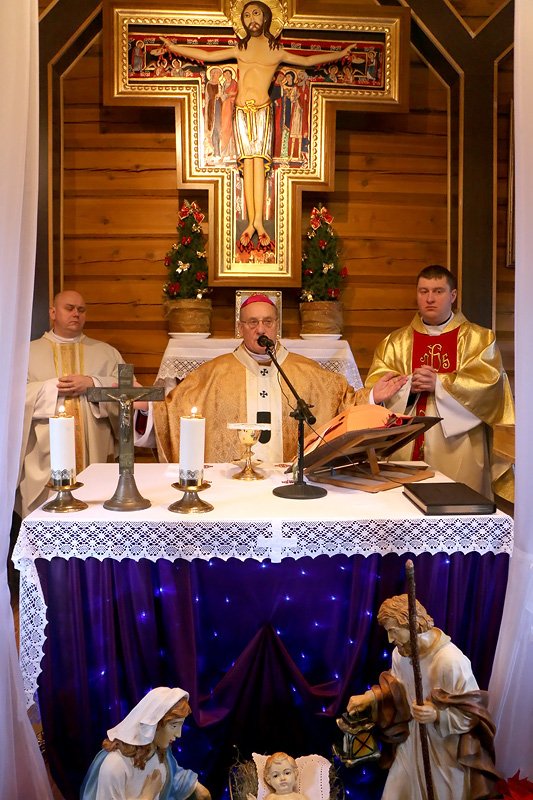 На пачатку святой Імшы, якую ўзначаліў арцыбіскуп Тадэвуш Кандрусевіч, арцыпастыр падкрэсліў сэнс Божага Нараджэння і нагадаў пра ўспамін святога Яна Евангеліста, тытул якога носіць парафія: