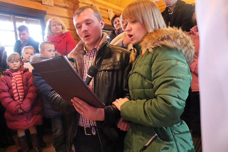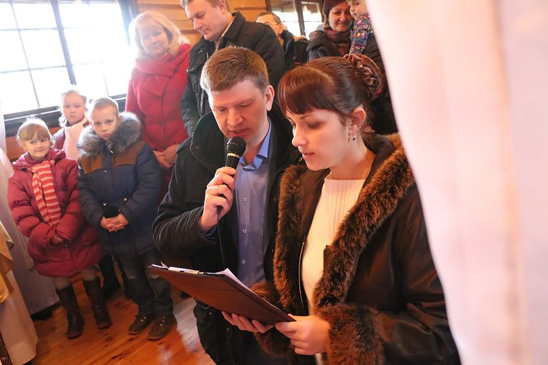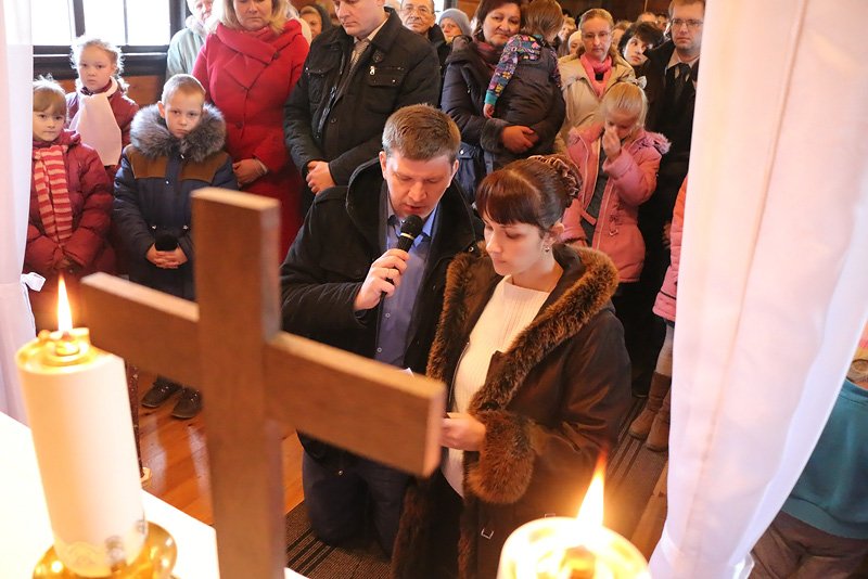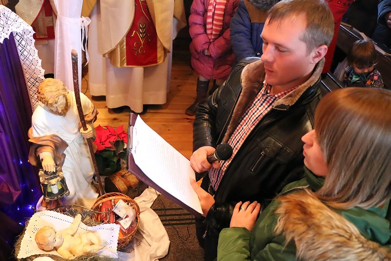 Пяць сужэнскіх пар прысвяцілі свае сем’і Богу і склалі абяцанні: «Сёння, Езу Хрыстэ, мы бяром Тваё Евангелле за Канстытуцыю нашай сям’i. У лучнасцi з Касцёлам i яго пастырамi будзем змагацца з грахом, баранiць святасць сужэнства i зачатага жыцця. Будзем абараняць сям’ю ад п’янства, распусты i нянавiсцi… Учынi, каб нашая сям’я, паяднаная з Табою, праслаўляла ў небе Тваю мiласэрнасць», — зачытвалі сем’і свае абяцанні.
