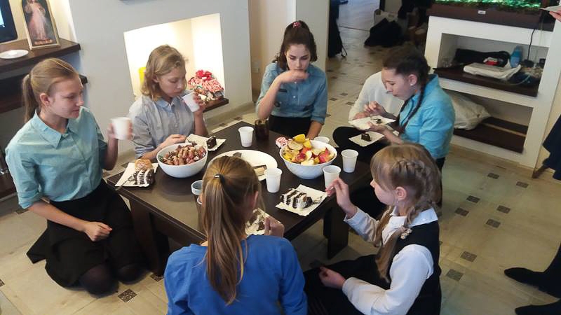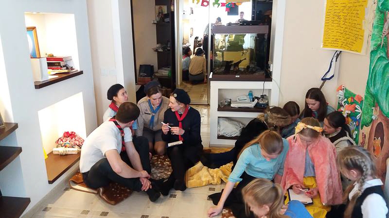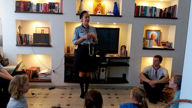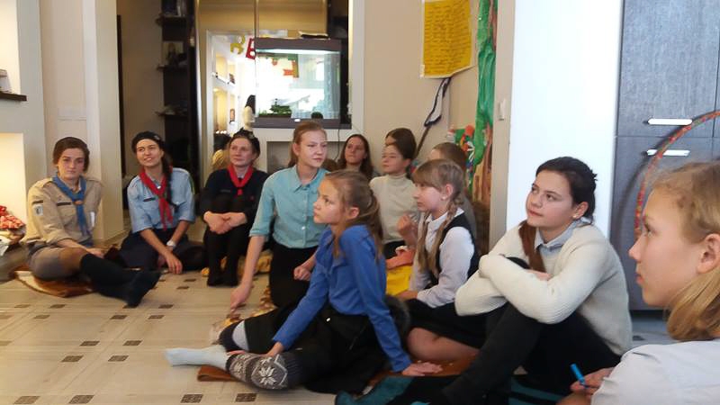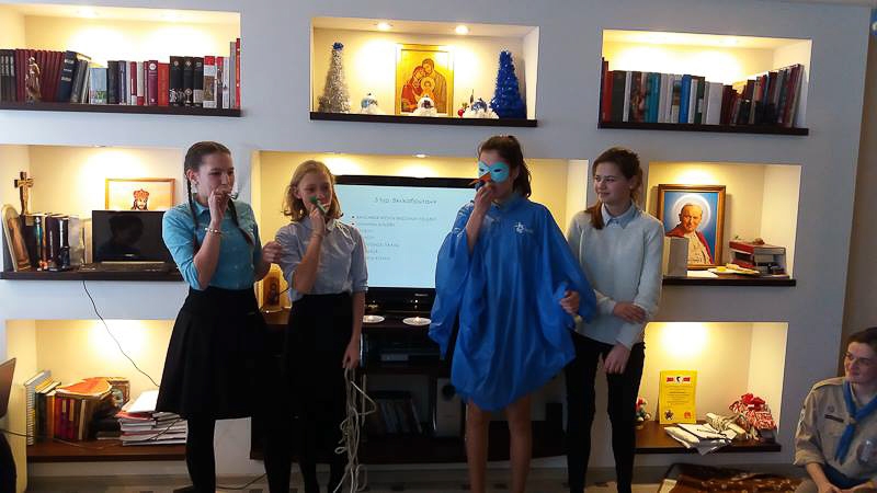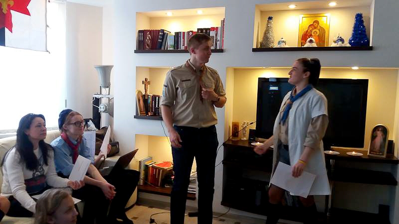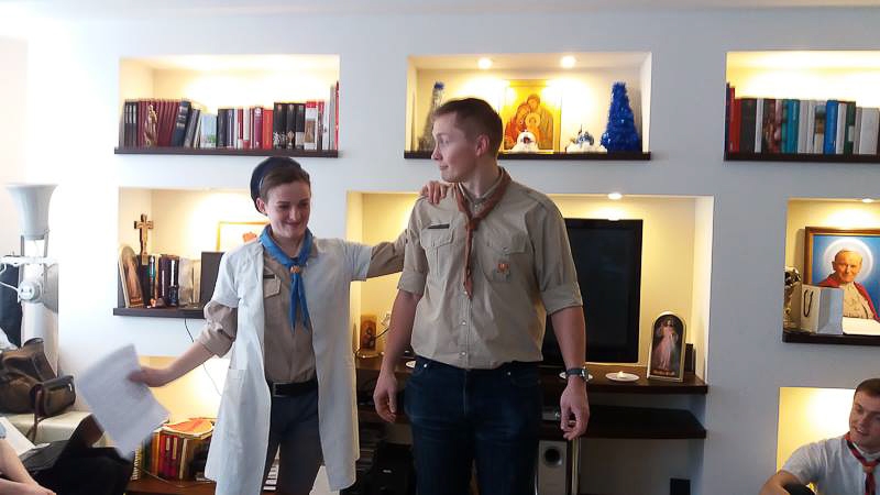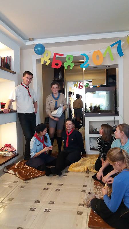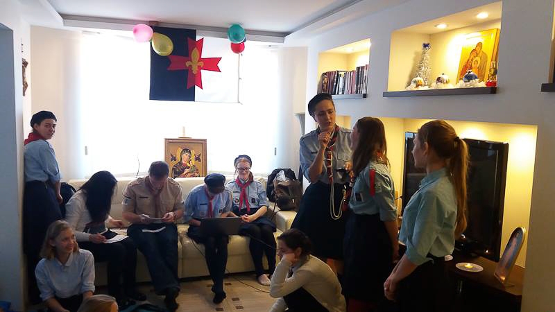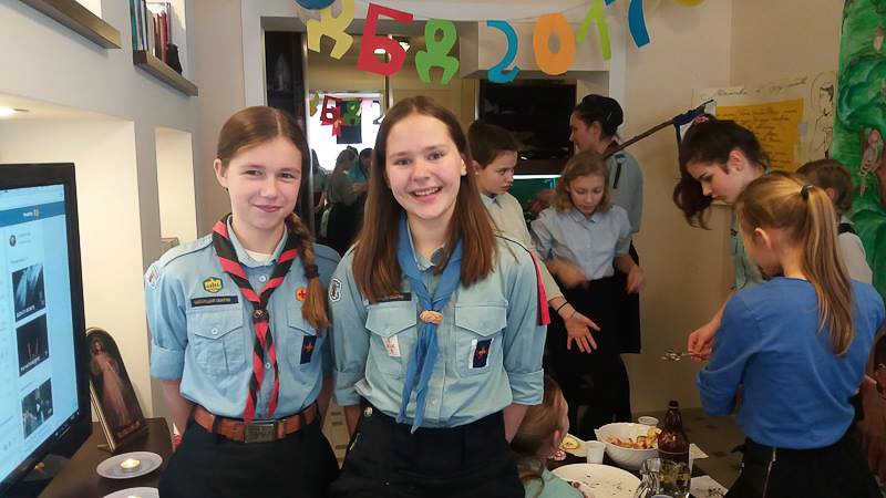 Усё распачалося малітвай. Праз Ружанец дзяўчаты падзякавалі Добраму Богу за атрыманыя ласкі: Бадэн-Паўэла і скаўтынг у іх жыцці. А пасля… Пасля пачаліся прыгоды. Якое ж скаўцкае свята без прыгод і спаборніцтва? Кожнае кап’ё атрымала заданне купіць свечкі для імянінніка. Але крамаў навокал не шмат, асабліва са свечкамі. Больш спрытнай у гэтым апынулася кап’ё “Вавёрка”, якое вельмі хутка справілася з гэтым заданнем.