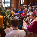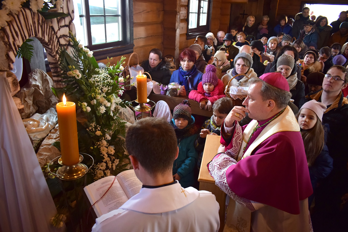 У Вялікую суботу парафію наведаў біскуп Юрый Касабуцкі. Ён памаліўся разам з вернікамі, благаславіў велікодныя стравы і пажадаў усім радаснага свята Пасхі.