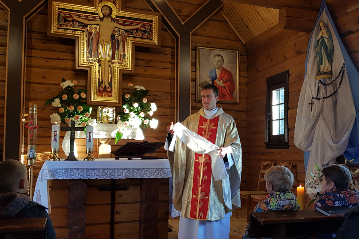 Ксёндз Уладзімір у казанні распавёў, як Езус падчас апошняй вячэры падпярэзаўся і пачаў абмываць вучням ногі. “Любіць - значыць служыць”- адзначыў ксёндз Уладзімір. Кандыдаты атрымалі белыя стужкі як напамінанне аб гатоўнасці да служэння па прыкладу Езуса.