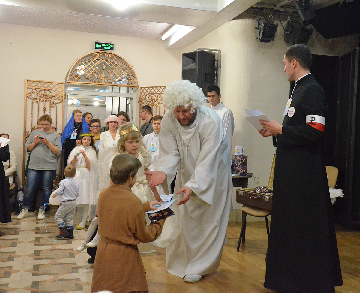 Цэлы вечар дзеці і дарослыя вучыліся радасна несці святасць і проста артымлівалі задавальненне ад супольнай забавы.