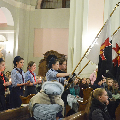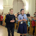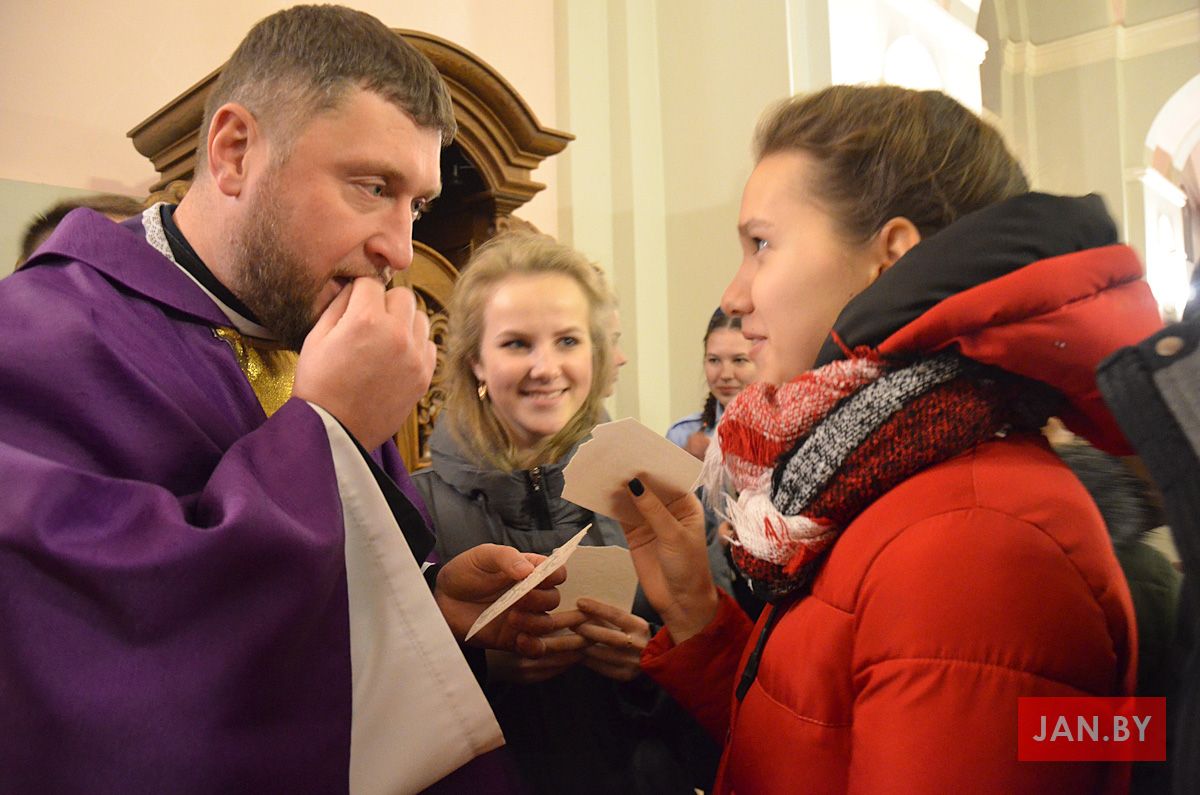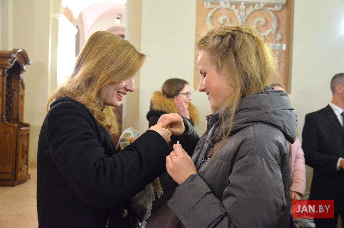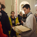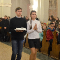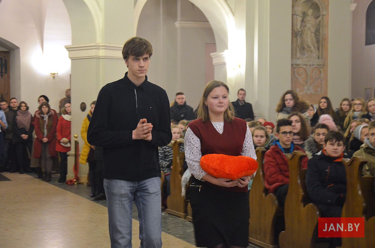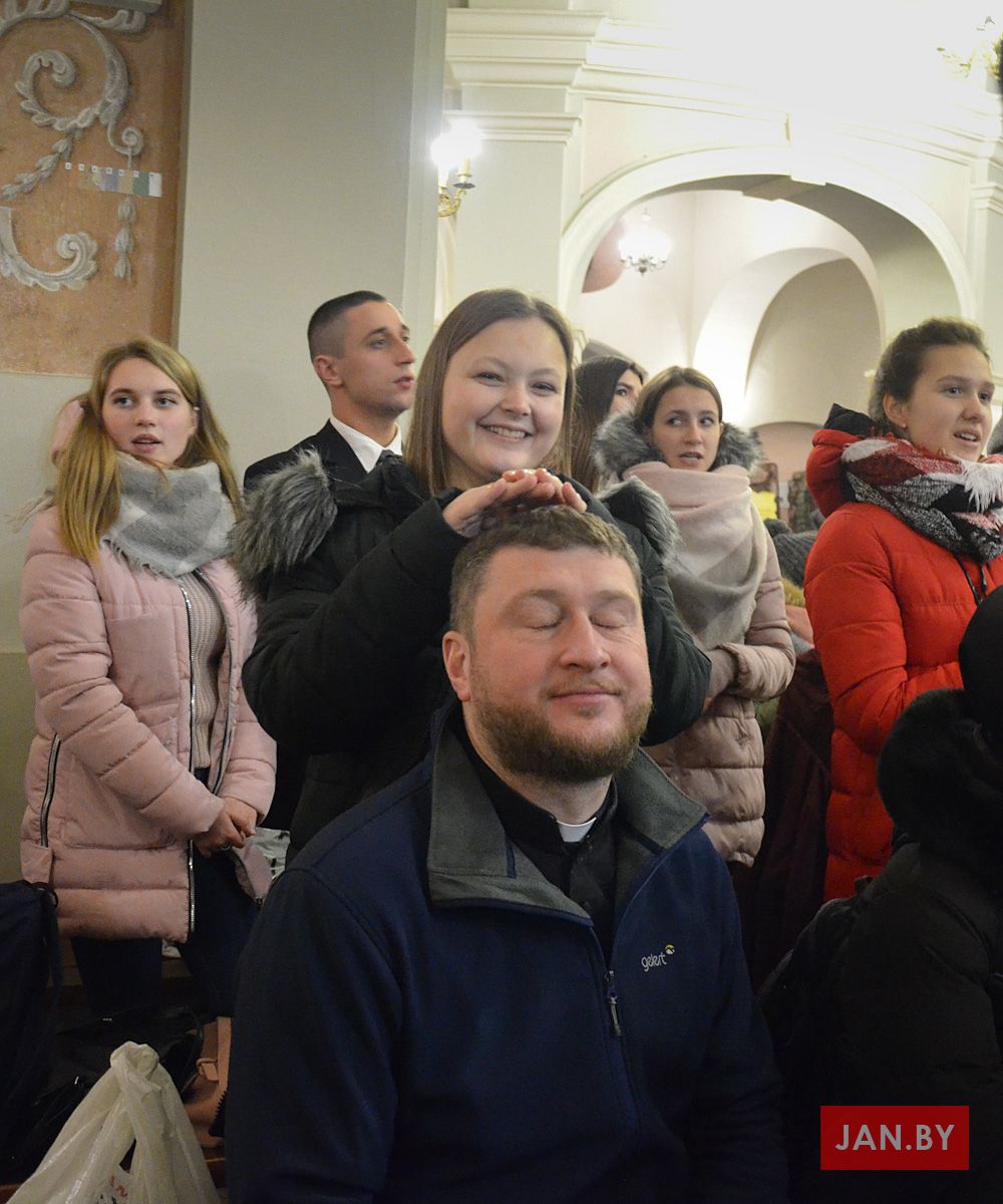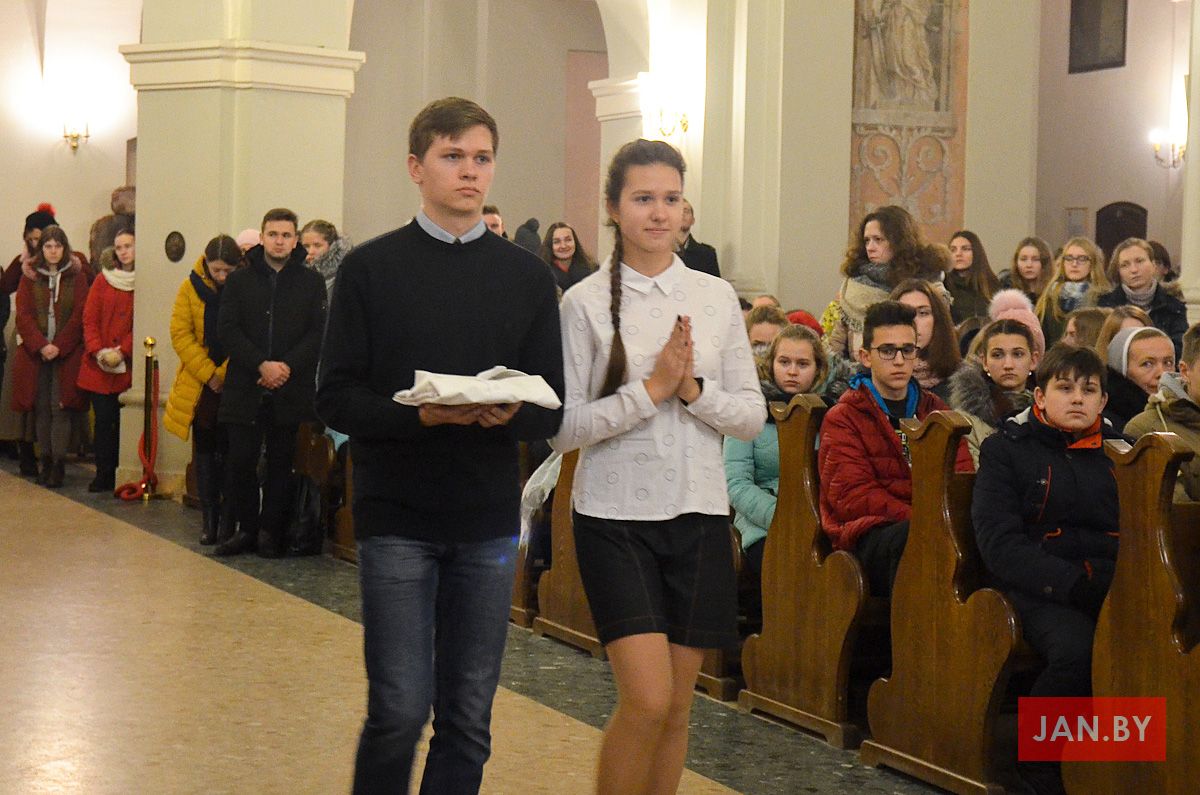 Душпастырства Моладзі Хрыста “Адзіныя сэрцам” (менавіта такая назва ад нядаўна аб’ядноўвае супольнасць студэнцкай і працуючай моладзі нашай парафіі), было адказнае за працэсію з дарамі падчас Святой Імшы. Маладыя людзі ахвяравалі зялёныя галінкі, белае адзенне, чырвонае сэрца, сінія кеды, ваду, віно і хлеб.