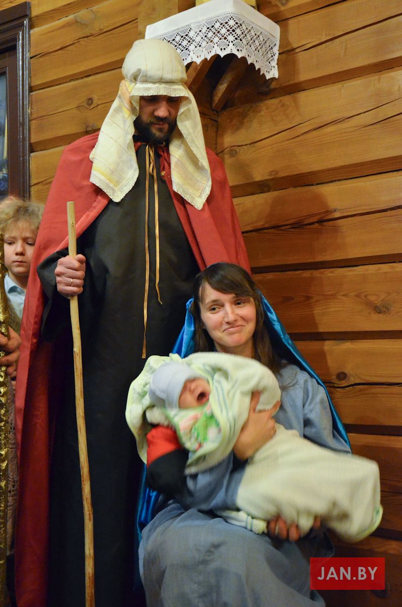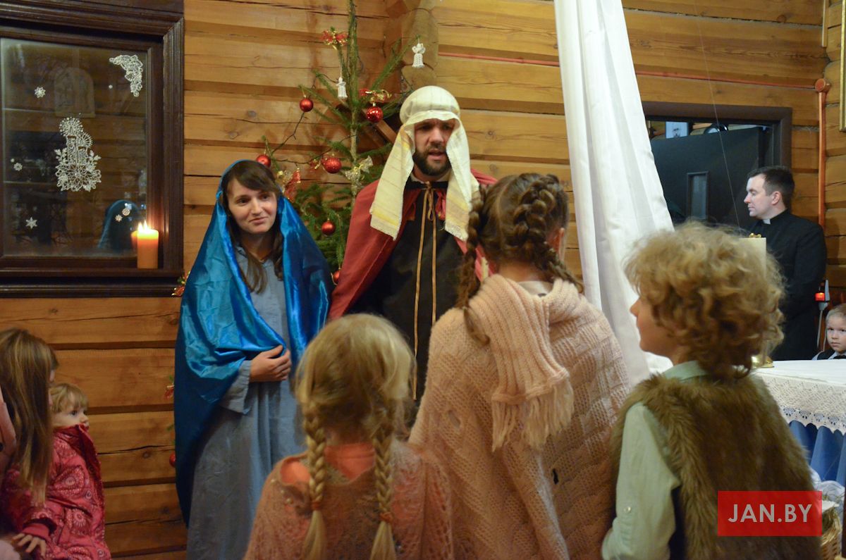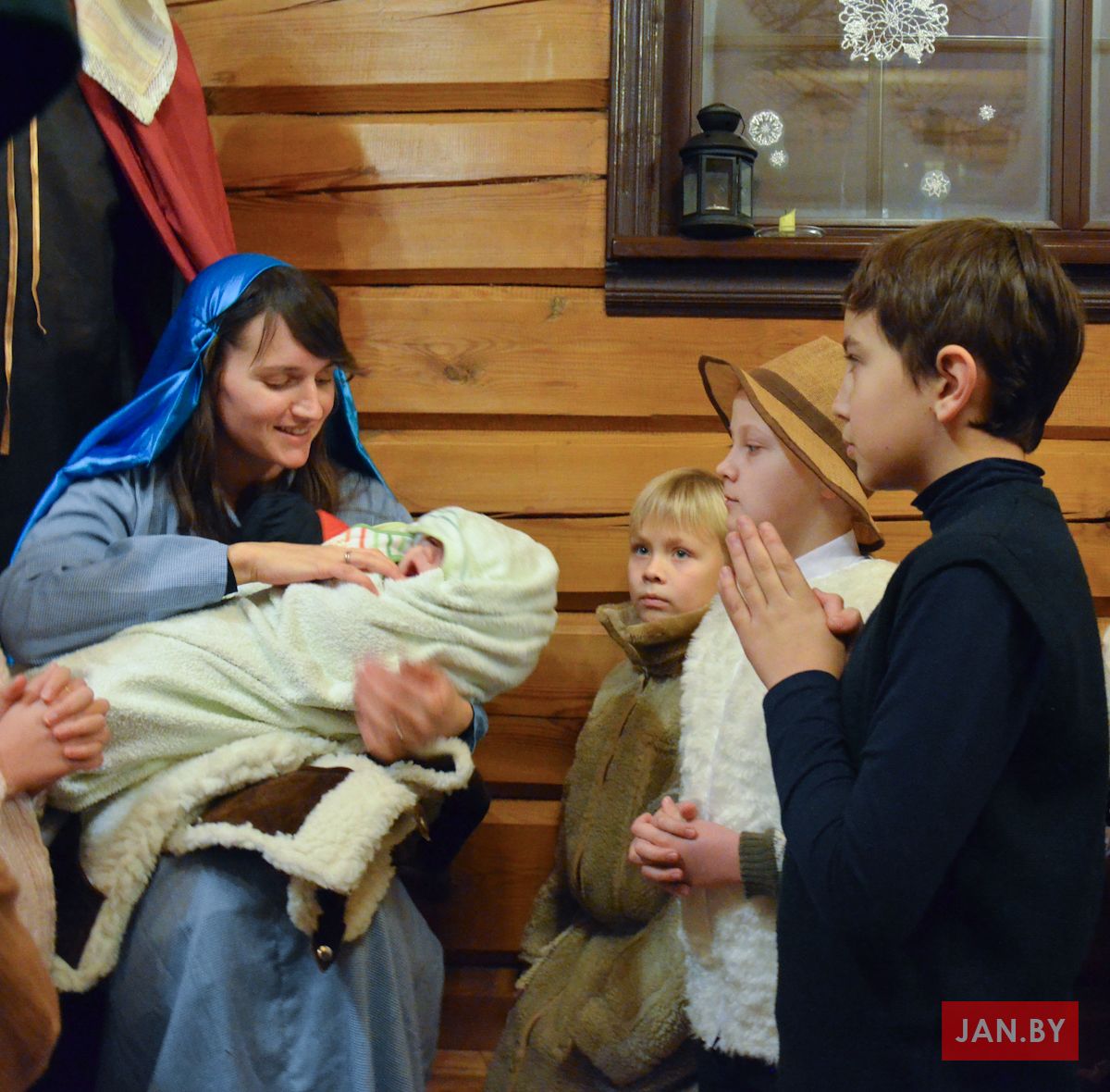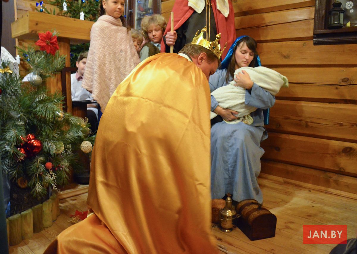 Традыцыйна на Каляды дзеці паказваюць батлейку - тэатральную сцэнку па евангельскіх матывах Божага Нараджэння. Сёлета да акторскага складу далучыліся і дарослыя. А вось ролю нованароджанага Езуса сыграла сапраўднае немаўля - маленькі Габрыэль.
