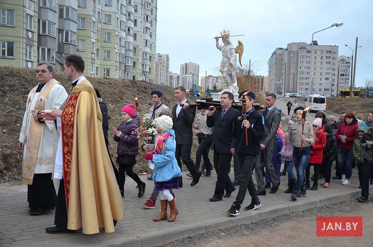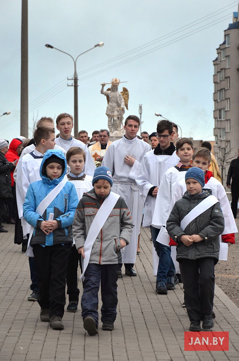 Пасля ўрачыстага прывітання фігуры, адбылося набажэнства да святога Міхала Арханёла, затым распачалася святая Імша, якую ўзначаліў кс. Ігар Лашук, адказны за перэгрынацыю.