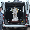 Гэтая фігура знаходзілася пэўны час ў пячоры аб’яўлення святога Міхала, і была асвечана падчас урачыстасцяў Дня аб’яўлення 8-га мая 2018 года. У гэты ж дзень была перавезена спецыяльным авіярэйсам ў Архікатэдральны касцёл г. Мінска, дзе знаходзілася да 1 ліпеня 2018 года. Падчас працэсіі Божага Цела была пранесена вуліцамі нашай сталіцы, а 1 ліпеня перавезена ў Будслаўскі санктуарый на час Адпустовых урачыстасцяў. 5 ліпеня 2018 года была перавезена ў парафію святога Міхала Арханёла ў вёску Багданава Валожынскага раёна, для якой і была прывезена з Італіі.