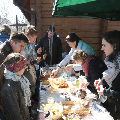 «Усё пачалося з таго, што на будову касцёла патрэбны ахвярадаўцы, і каб не чакаць іх, было вырашана не сядзець на мейсцы, але пачаць рабіць штосьці самім і вось вынік, — распавяла Людміла Чаган, адна з арганізатараў, — Кожны раз падрыхтоўка праходзіць па-рознаму. У гэтым годзе мы пачалі рыхтавацца трошачкі пазней, але за два тыдні зрабілі вельмі шмат: вербы, печыва, вышыванкі, цацкі, нават самі свечы робім і розныя вырабы з керамікі. Таксама не забываем пра рэкламу. Сёння нават прыйшлі тыя, хто пачуў пра кірмаш па “Радыё Марыя” і вырашыў падтрымаць нас».