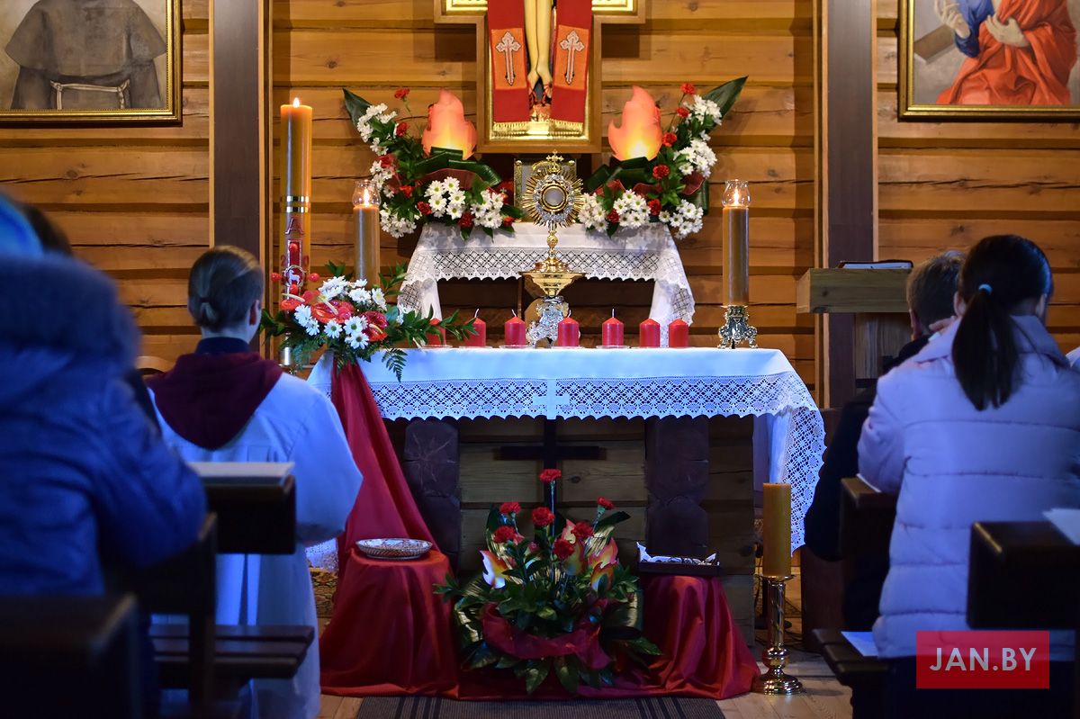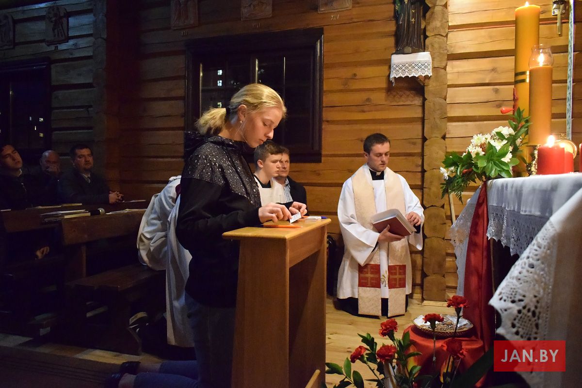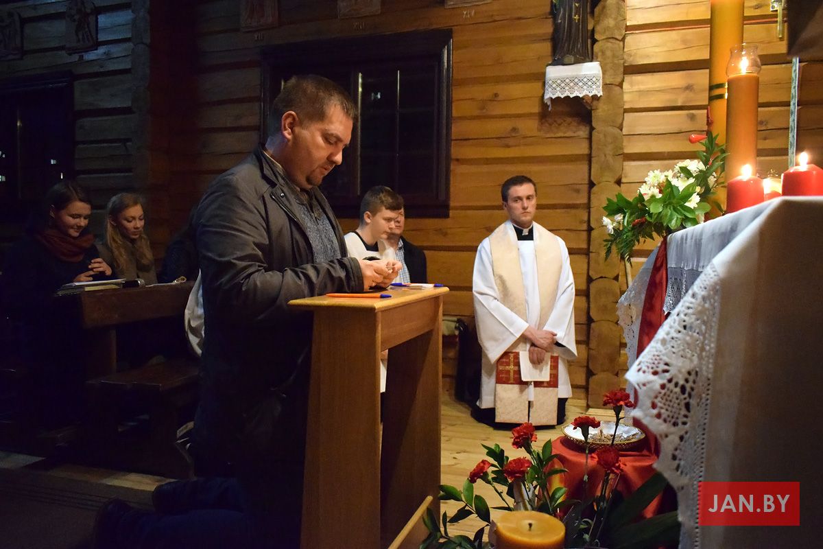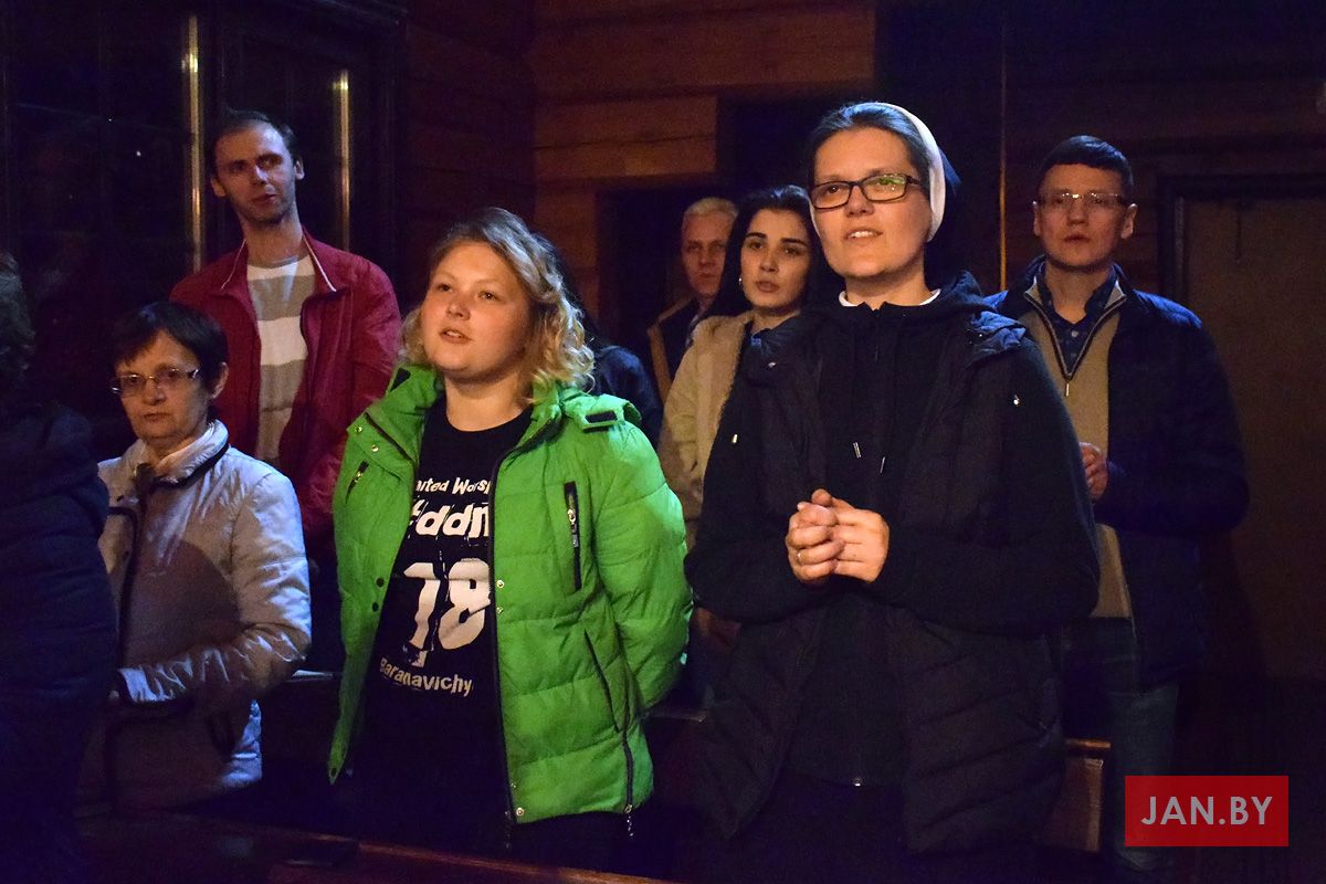 Увечары 4 мая, напярэдадні ўдзялення сакрамэнту канфірмацыі кандыдаты да канфірмацыі, іх сведкі і блізкія маліліся на чуванні перад Найсвяцейшым Сакрамэнтам.