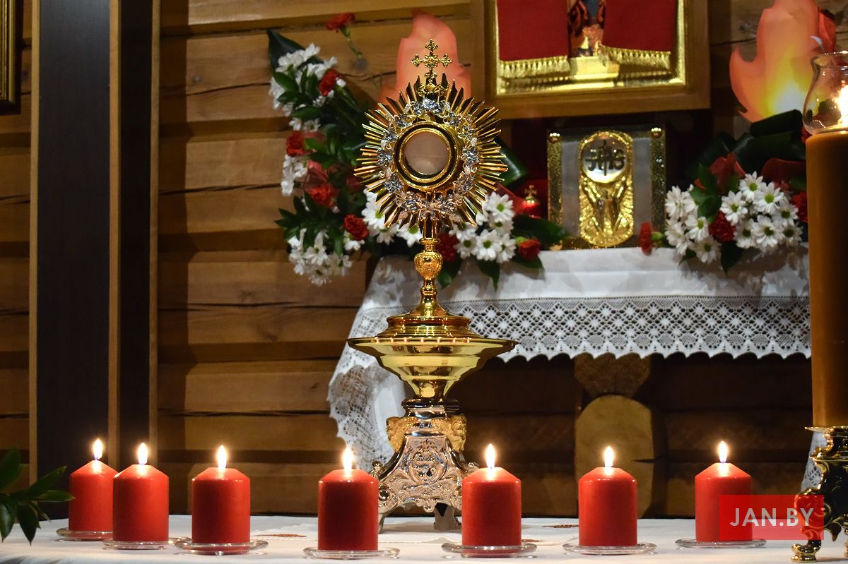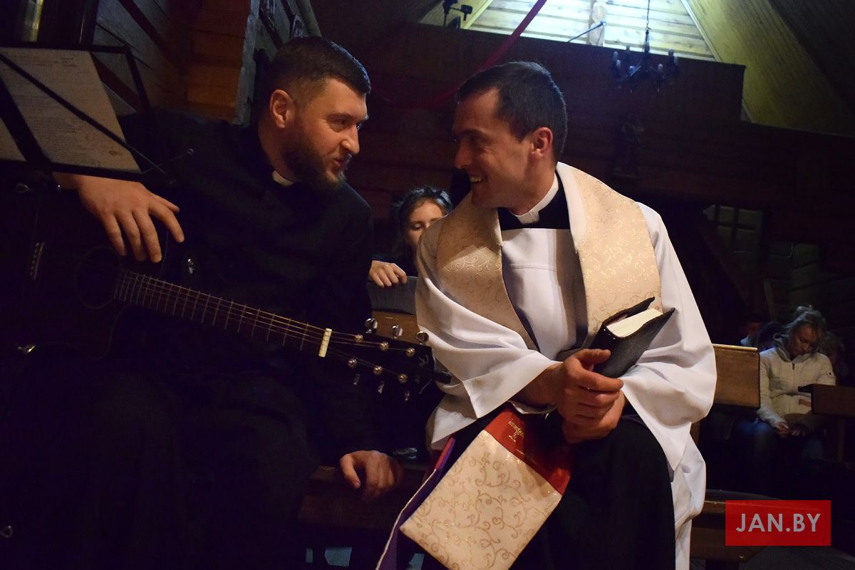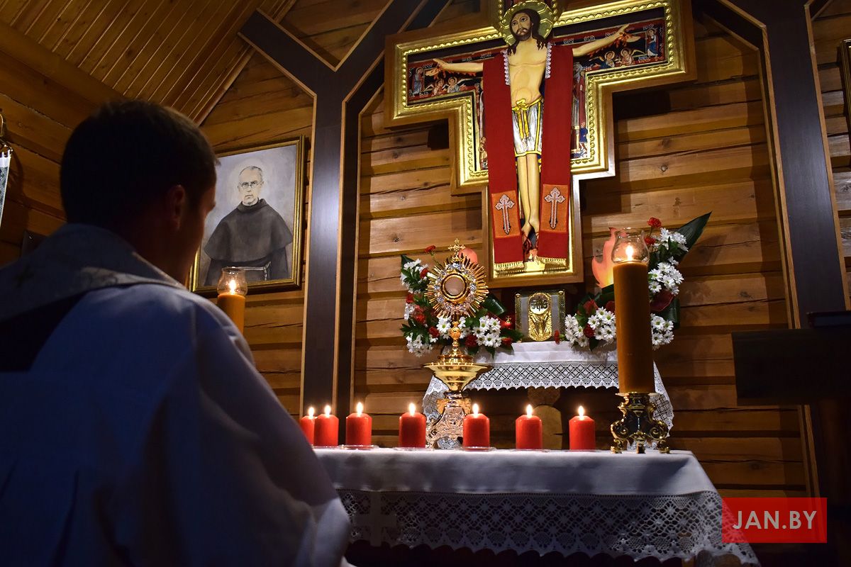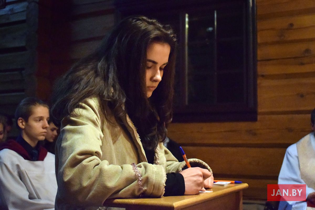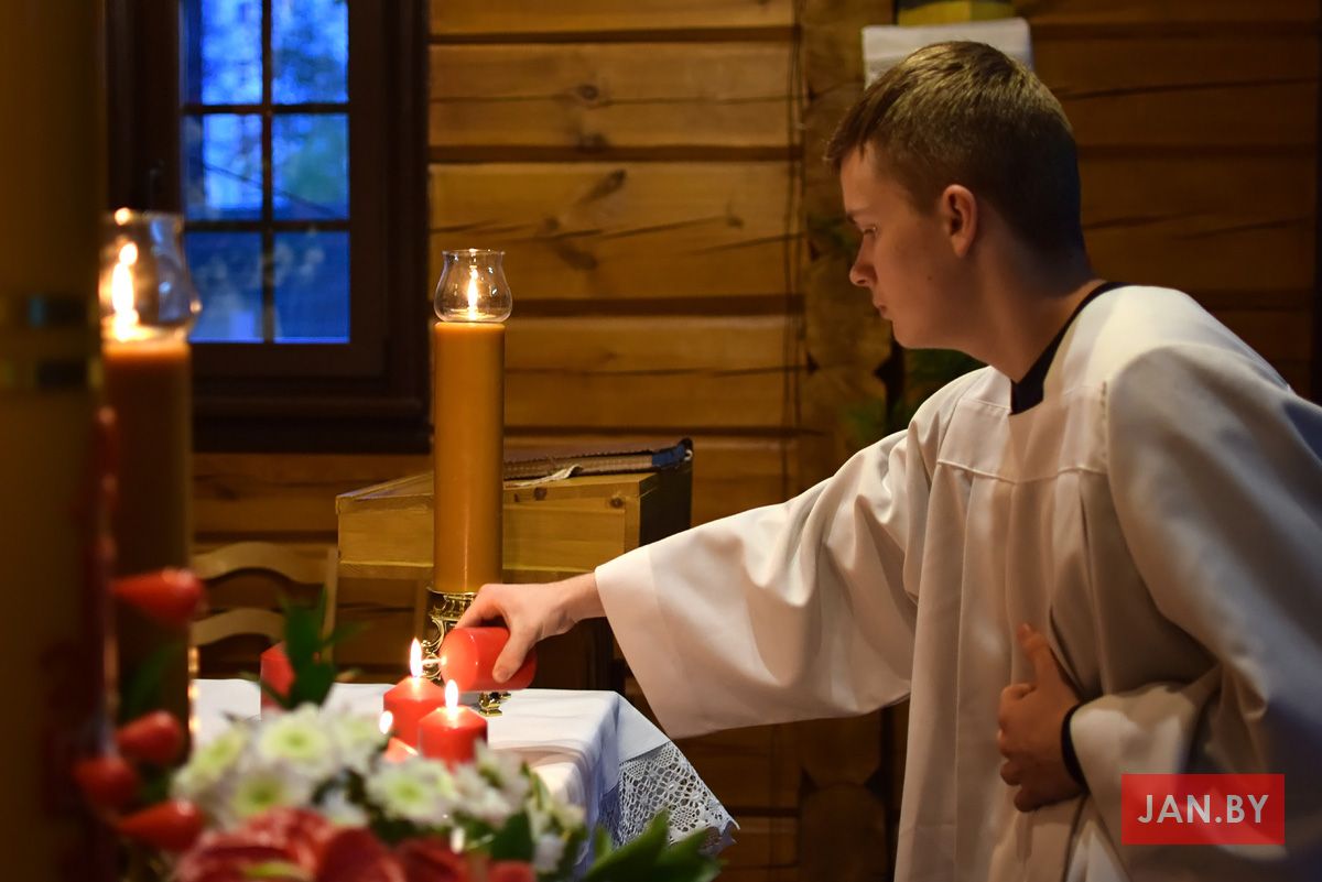 Увечары 4 мая, напярэдадні ўдзялення сакрамэнту канфірмацыі кандыдаты да канфірмацыі, іх сведкі і блізкія маліліся на чуванні перад Найсвяцейшым Сакрамэнтам.