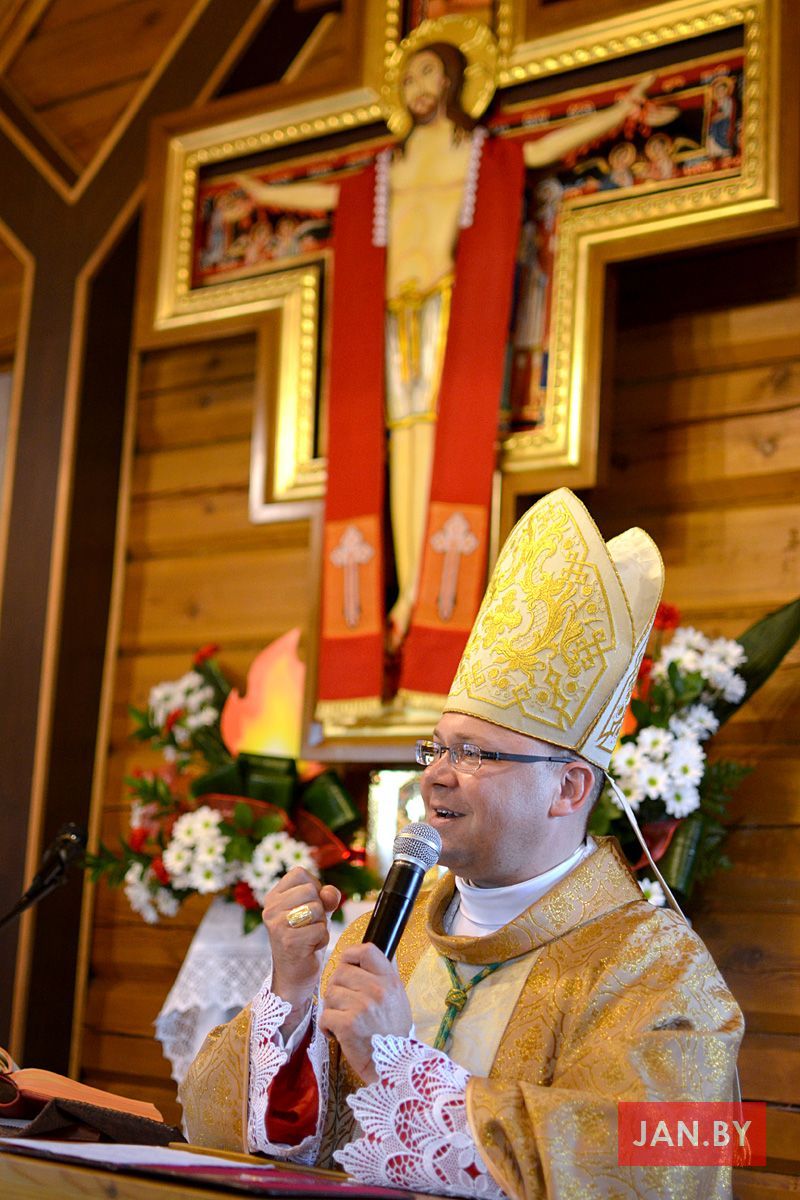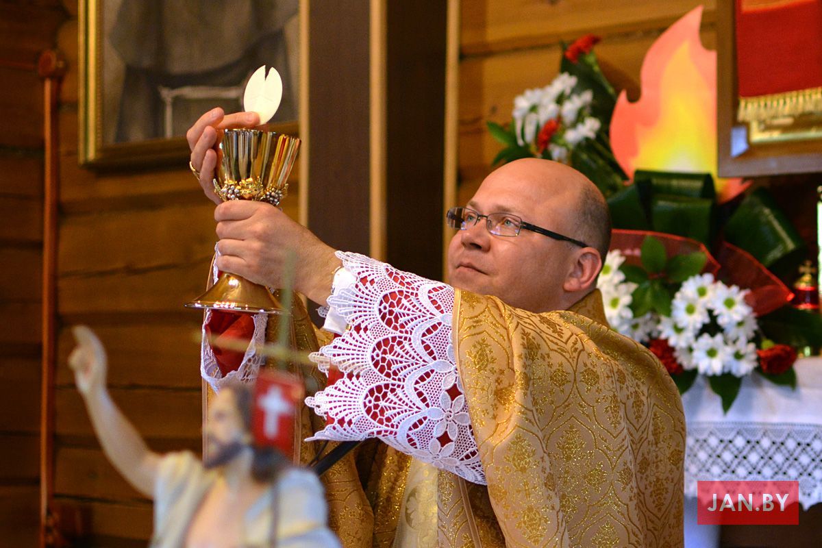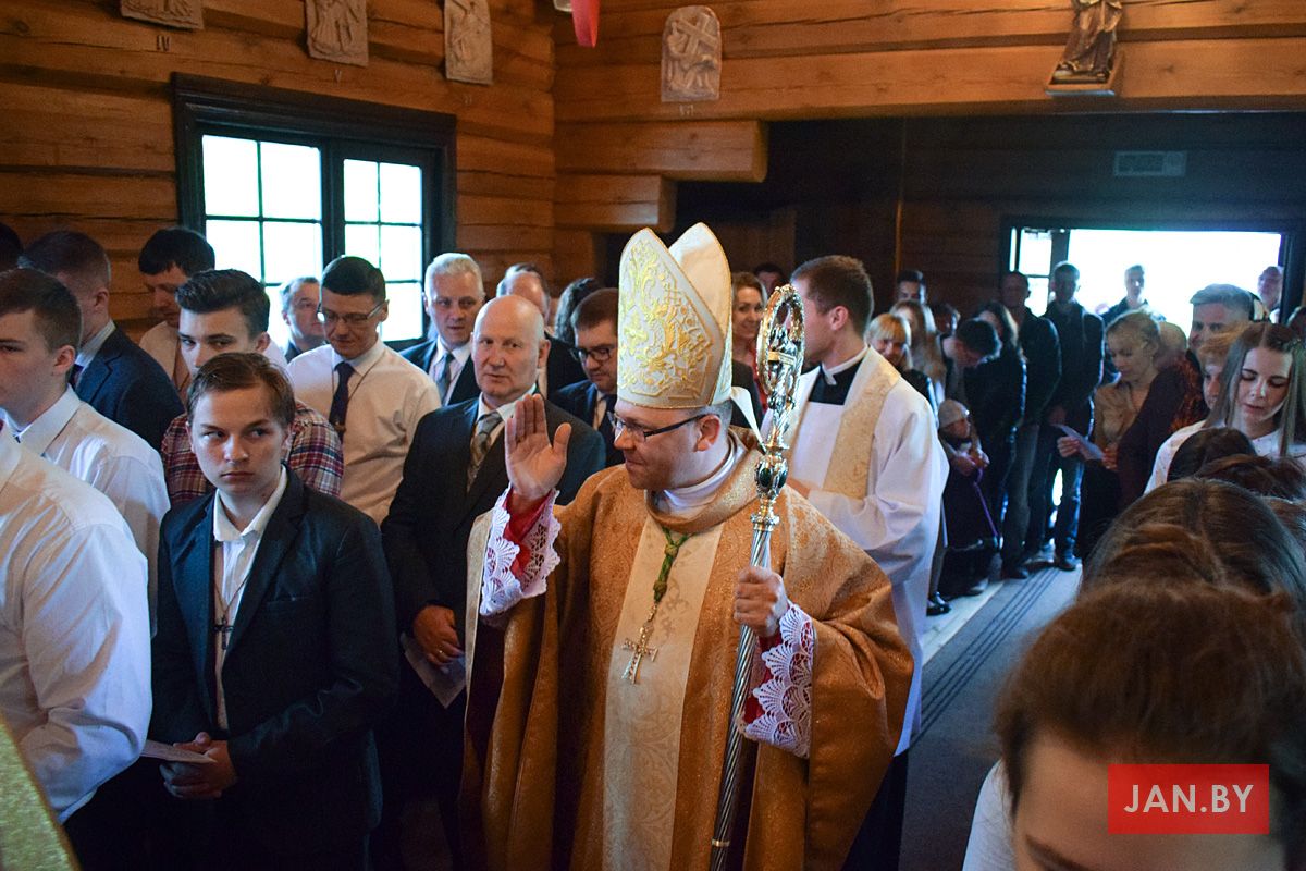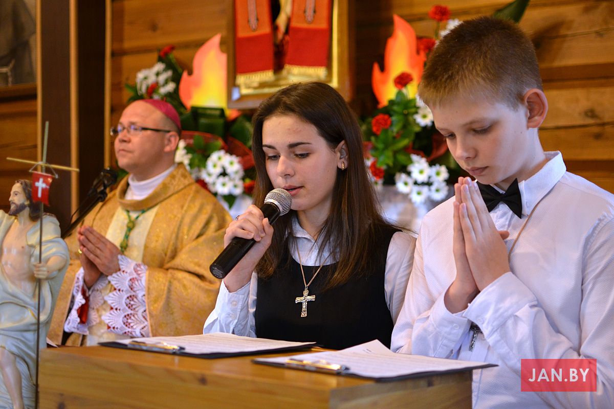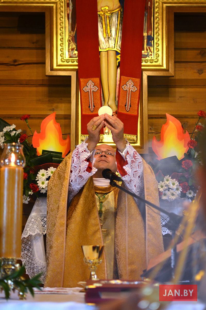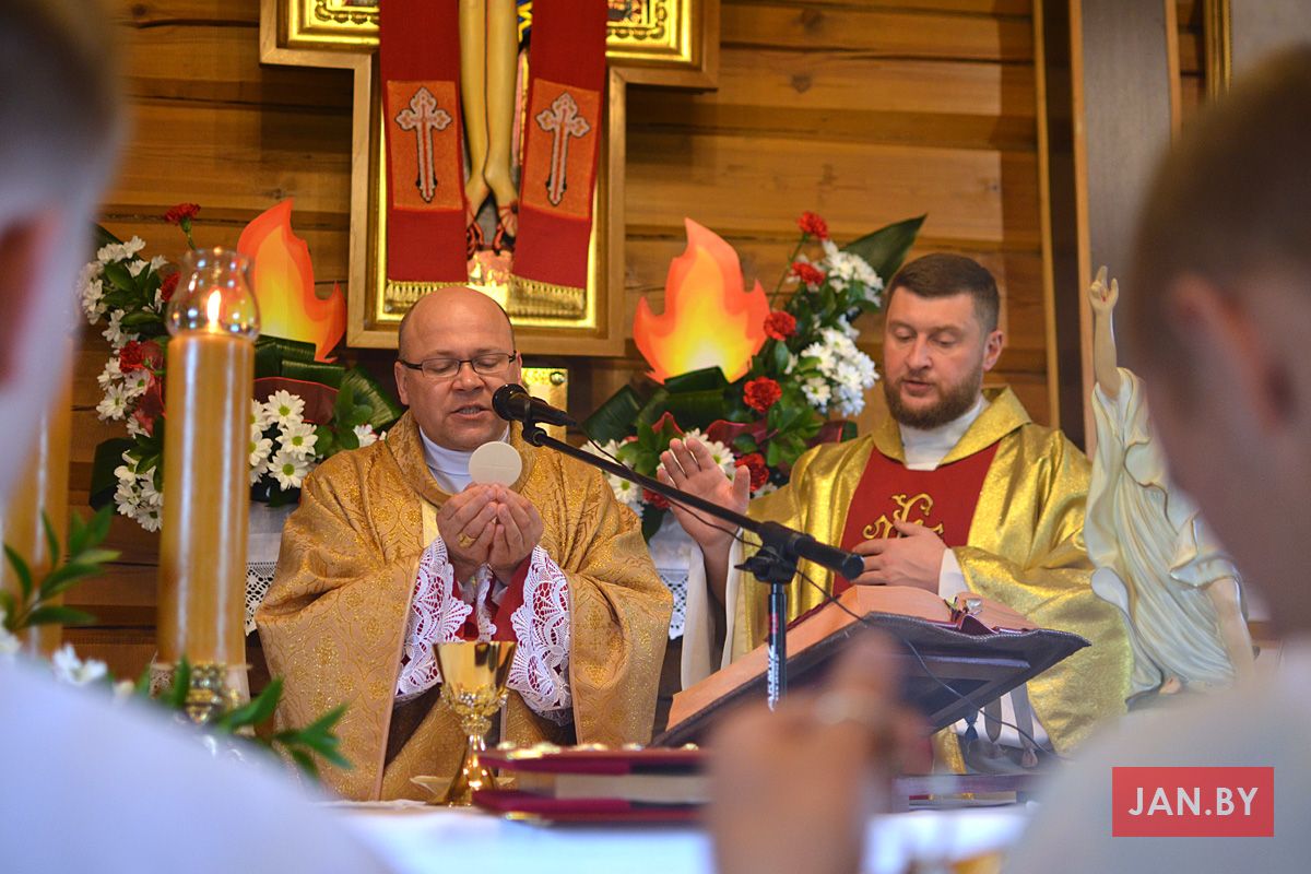 Удзяляў сакрамэнт канфірмацыі і ўзначальваў святую Імшу біскуп Аляксандр Яшэўскі SDB. У сваім казанні ён узгадаў чатыры вобразы Святога Духа: агонь, павеў ветру, галубка і ваду. Як слупом агня Пан Бог вёў габрэйскі народ праз пустыню, і як агнём Ён знішчыў Садом і Гамору, у выглядзе голуба зыходзіў з неба падчас хросту Езуса ў Ярдане, так і ў нашых сэрцах, Дух Святы будзе дзейнічаць і варушыць нас.