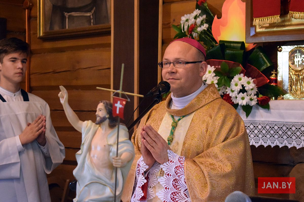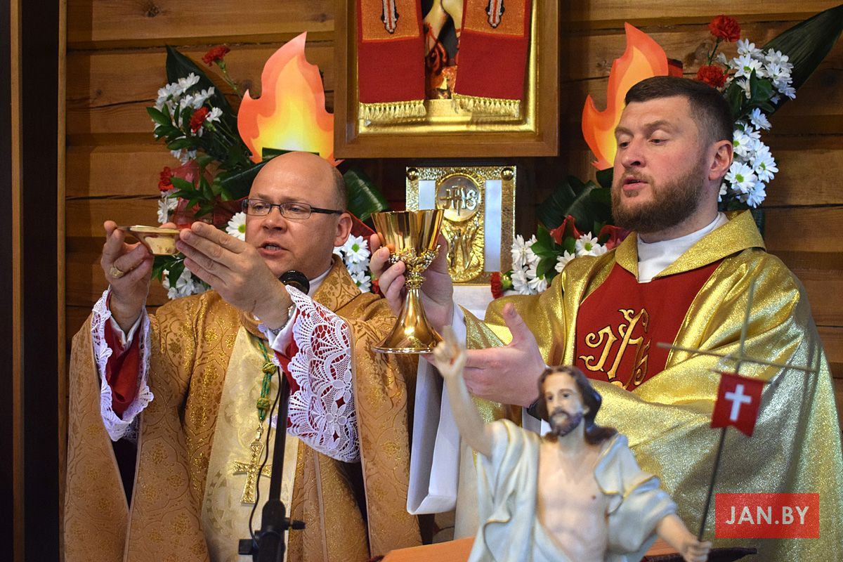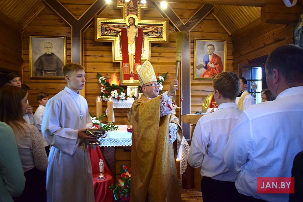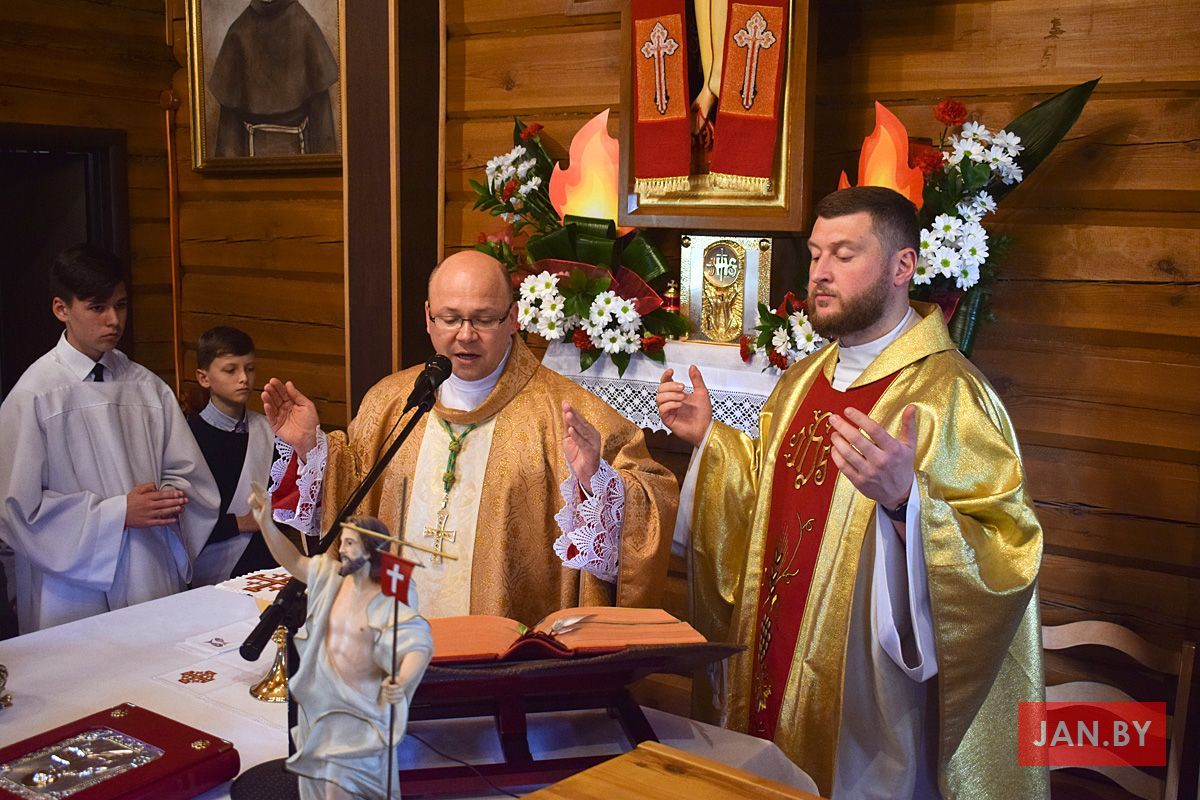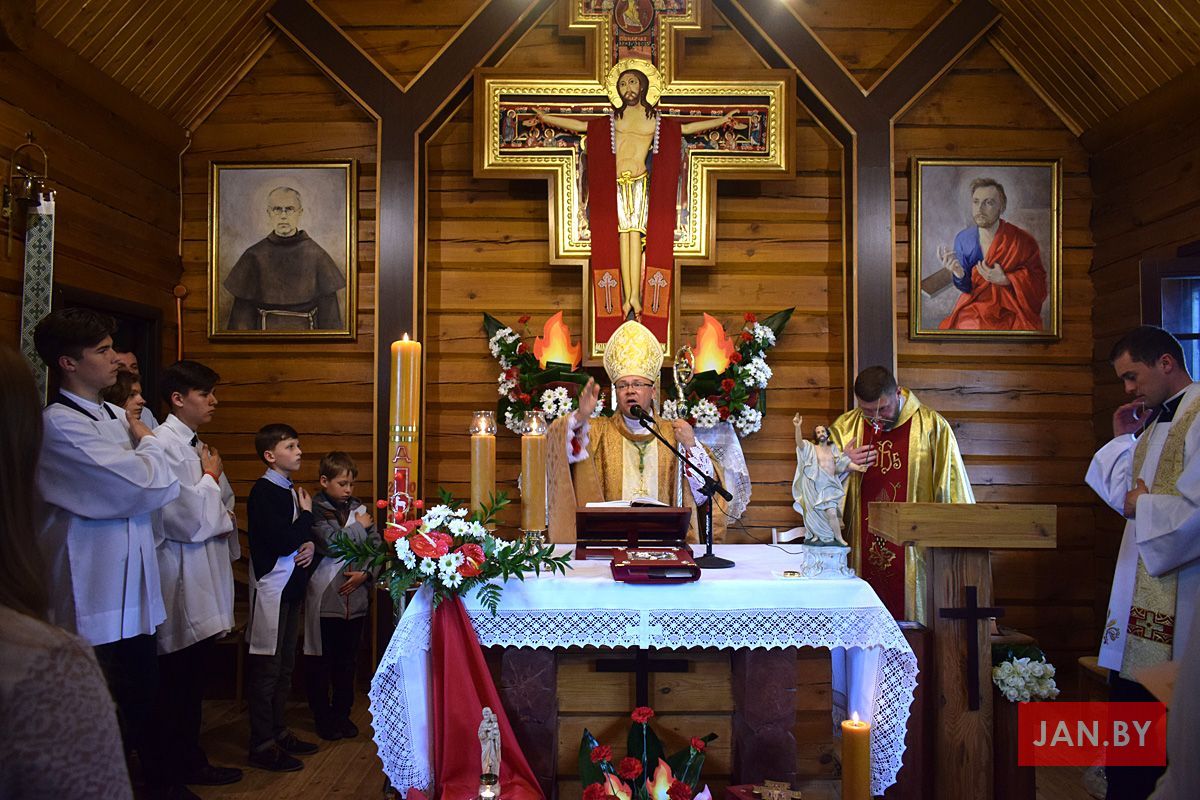 Удзяляў сакрамэнт канфірмацыі і ўзначальваў святую Імшу біскуп Аляксандр Яшэўскі SDB. У сваім казанні ён узгадаў чатыры вобразы Святога Духа: агонь, павеў ветру, галубка і ваду. Як слупом агня Пан Бог вёў габрэйскі народ праз пустыню, і як агнём Ён знішчыў Садом і Гамору, у выглядзе голуба зыходзіў з неба падчас хросту Езуса ў Ярдане, так і ў нашых сэрцах, Дух Святы будзе дзейнічаць і варушыць нас.