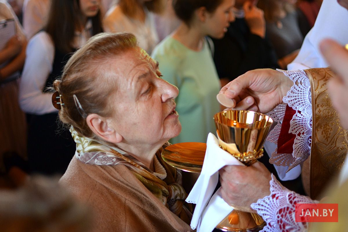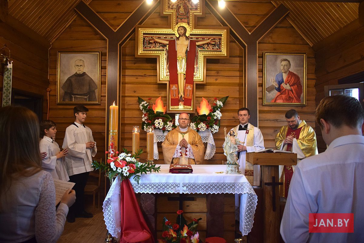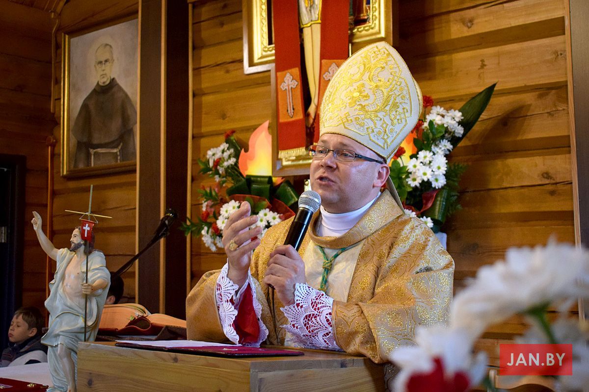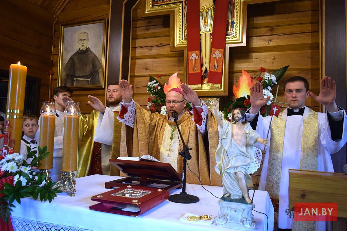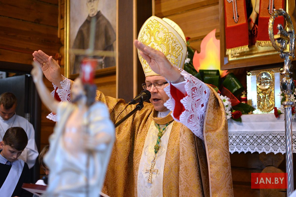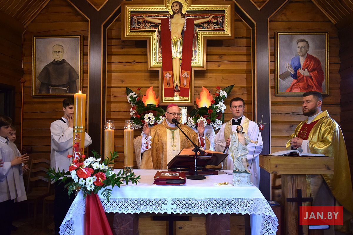Удзяляў сакрамэнт канфірмацыі і ўзначальваў святую Імшу біскуп Аляксандр Яшэўскі SDB. У сваім казанні ён узгадаў чатыры вобразы Святога Духа: агонь, павеў ветру, галубка і ваду. Як слупом агня Пан Бог вёў габрэйскі народ праз пустыню, і як агнём Ён знішчыў Садом і Гамору, у выглядзе голуба зыходзіў з неба падчас хросту Езуса ў Ярдане, так і ў нашых сэрцах, Дух Святы будзе дзейнічаць і варушыць нас.