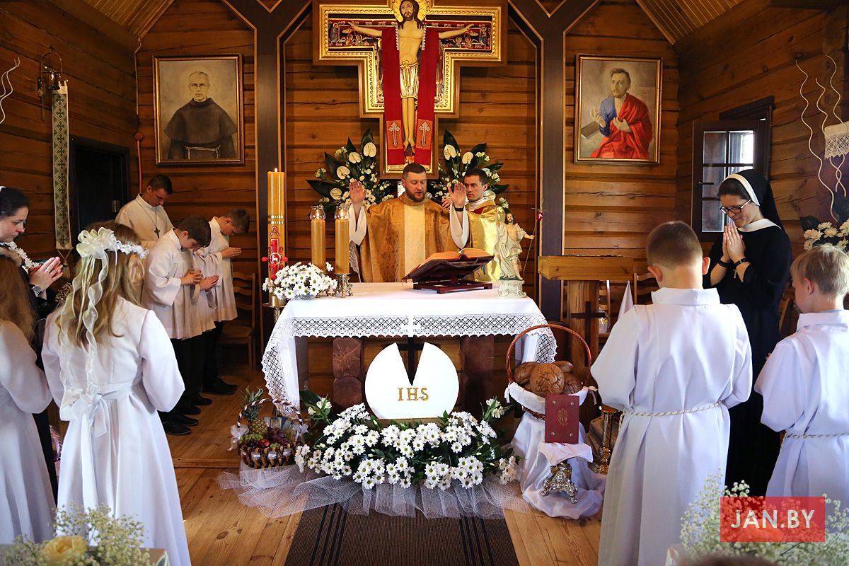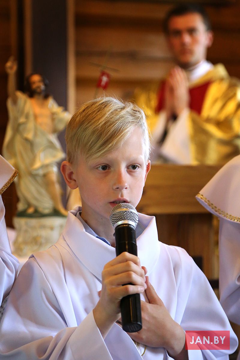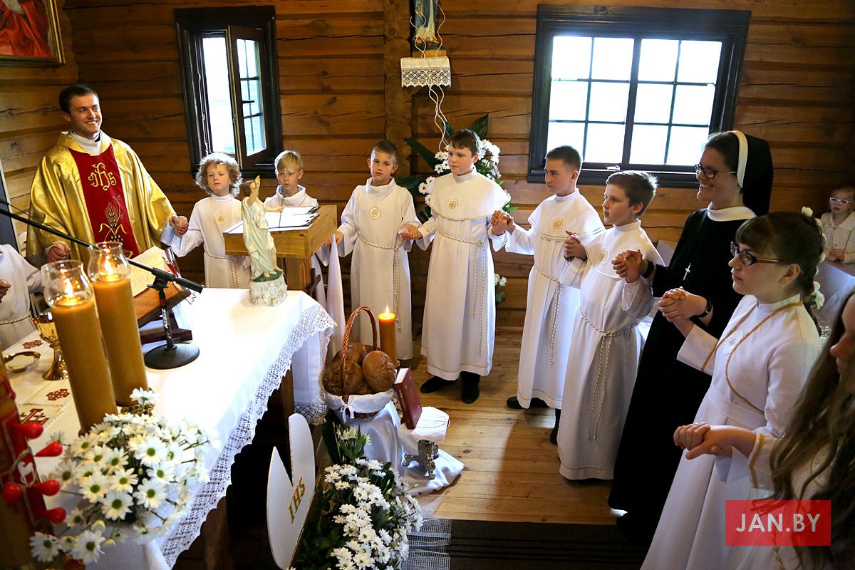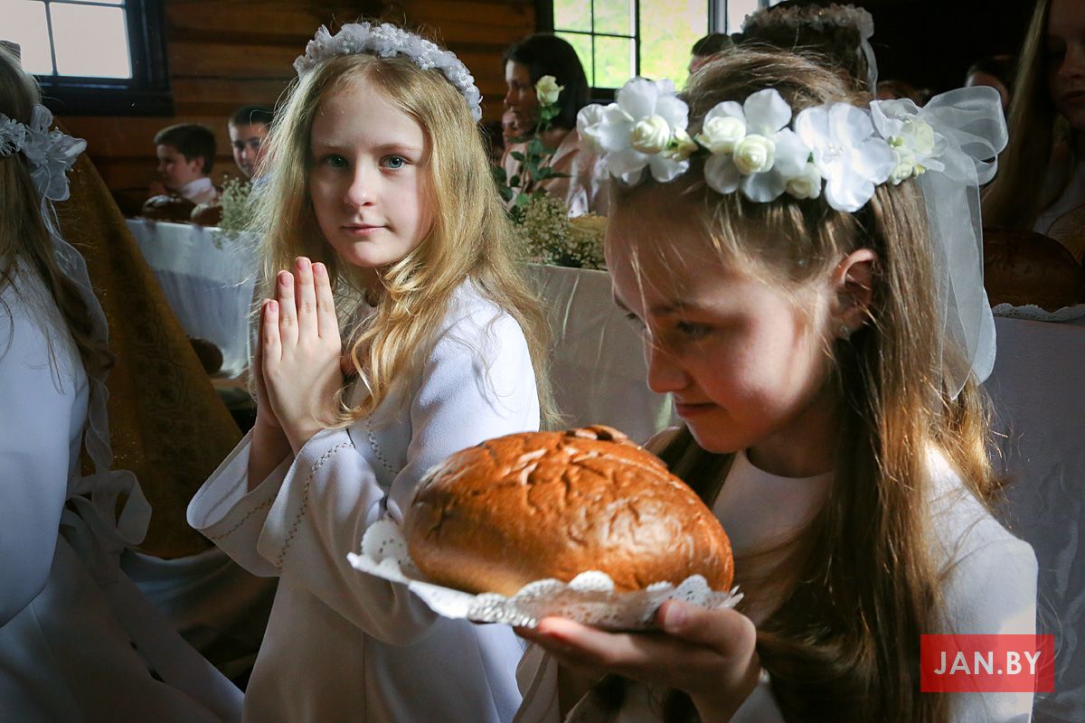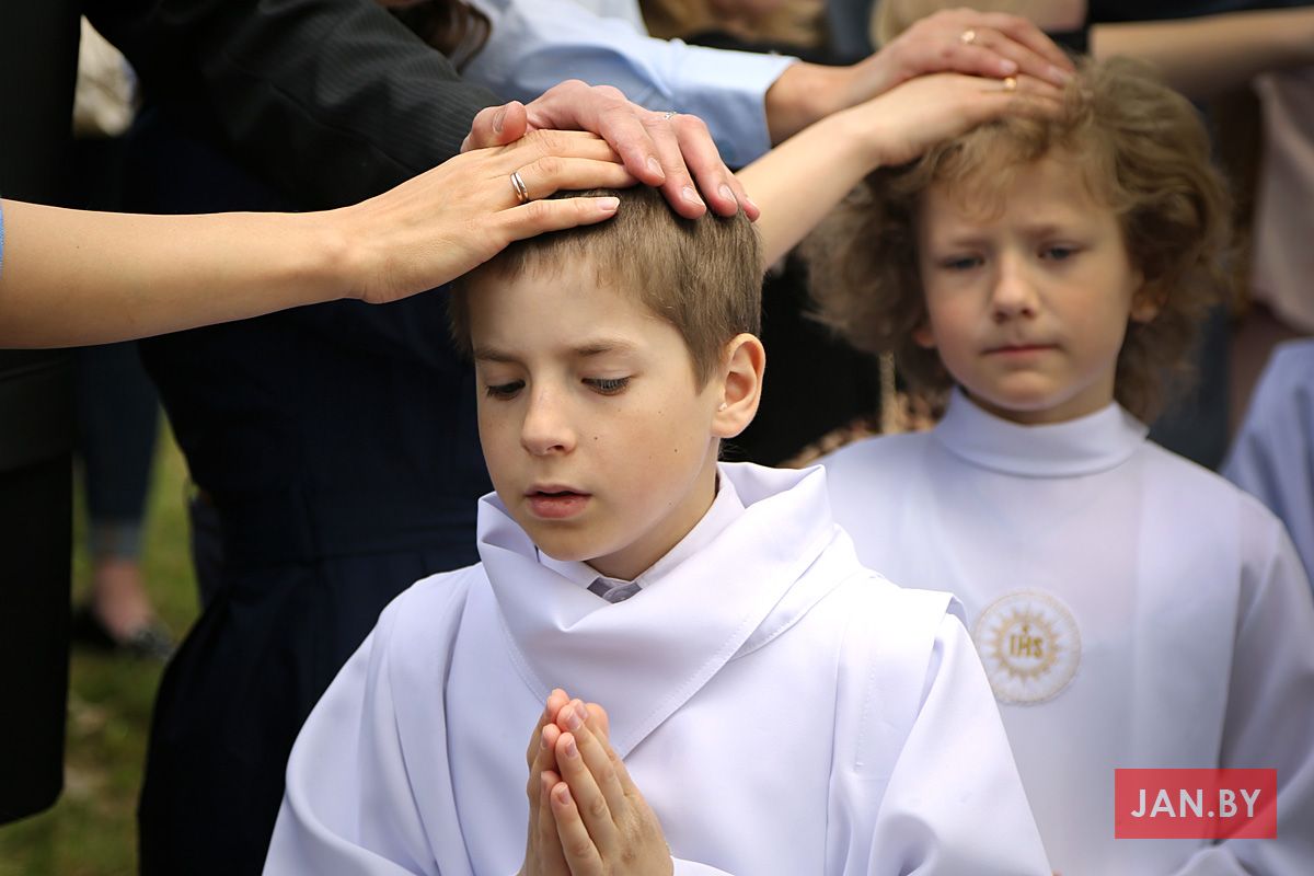 На пачатку ўрачыстасці бацькі благаславілі сваіх дзяцей: «Хрыстэ, Ты запрашаеш іх да Стала Слова, Цела і Крыві Тваёй, няхай гэты спажытак дасць ім сілы з радасцю наследаваць Цябе».