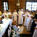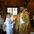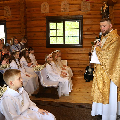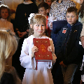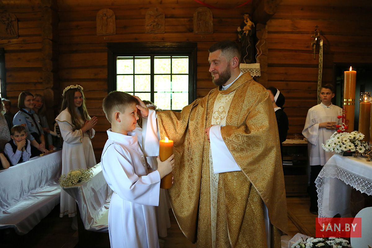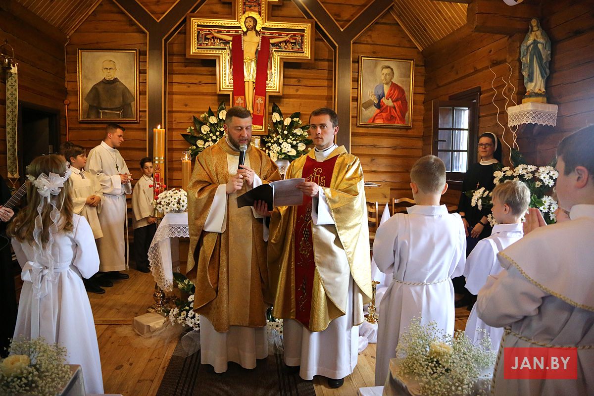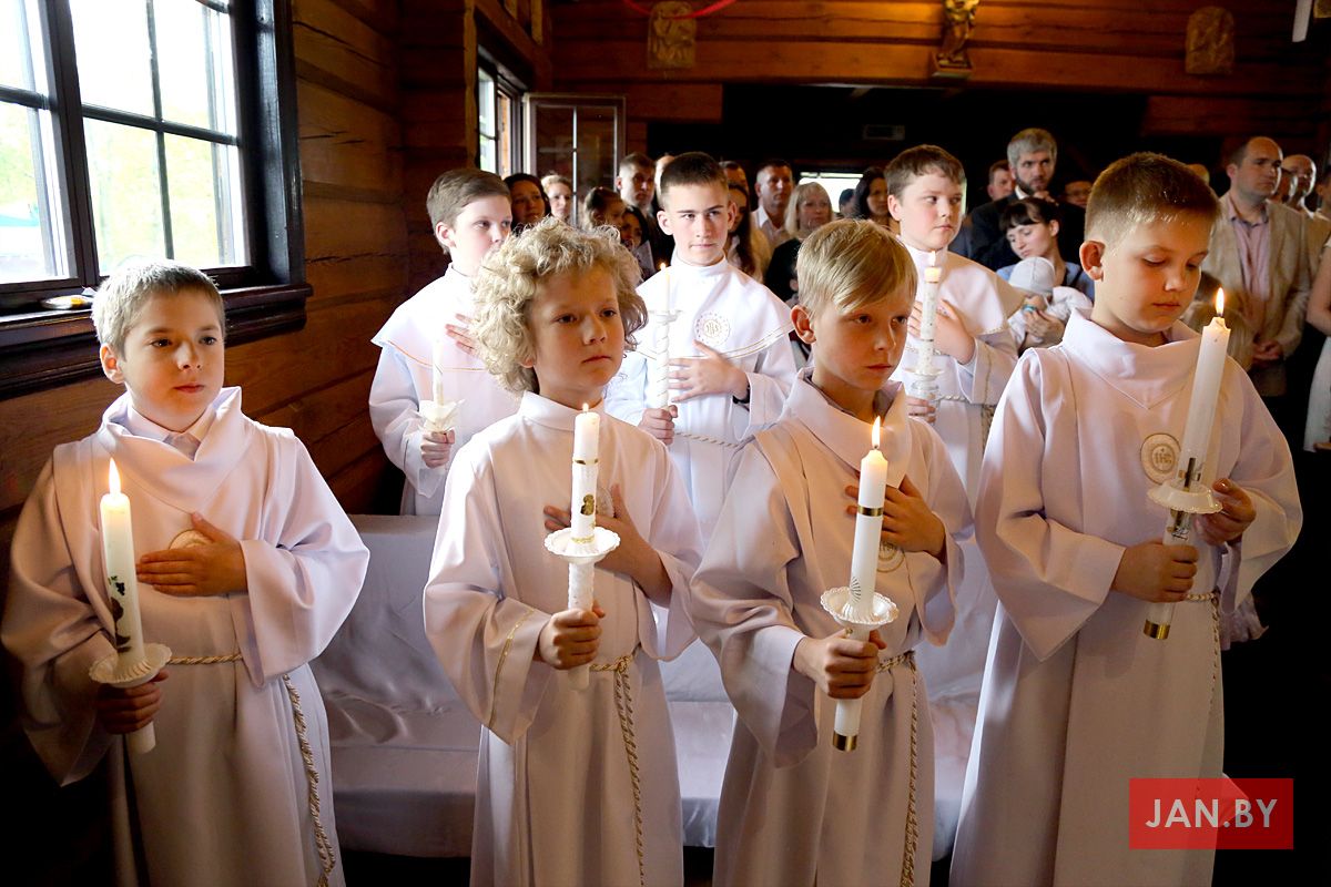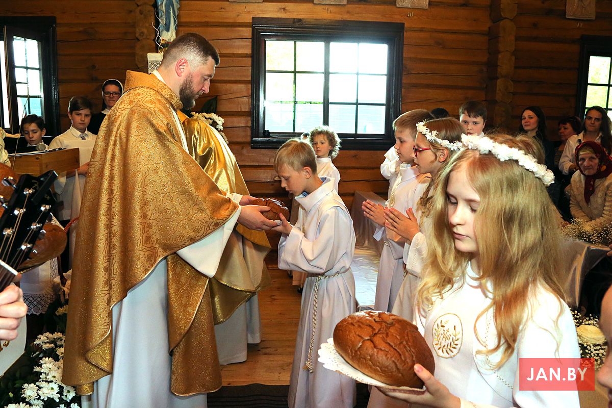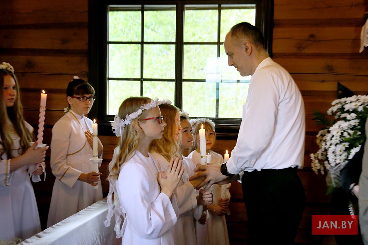 На пачатку ўрачыстасці бацькі благаславілі сваіх дзяцей: «Хрыстэ, Ты запрашаеш іх да Стала Слова, Цела і Крыві Тваёй, няхай гэты спажытак дасць ім сілы з радасцю наследаваць Цябе».