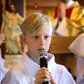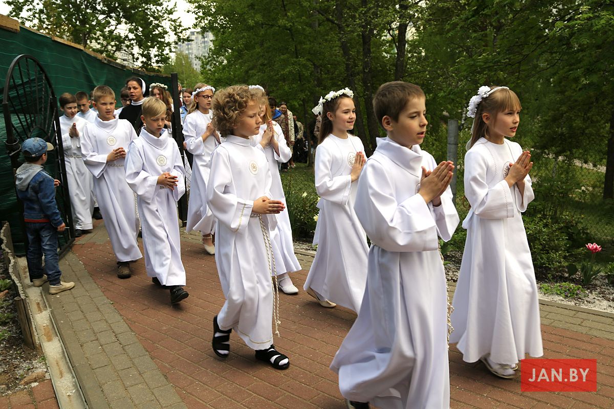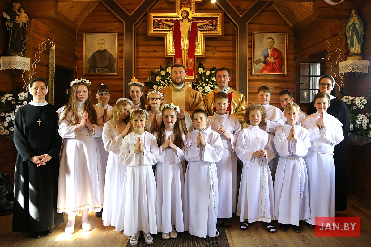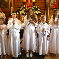 У нядзелю 12 мая чатырнаццаць дзяцей нашай парафіі першы раз у паўнаце ўдзельнічалі ў Святой Імшы.