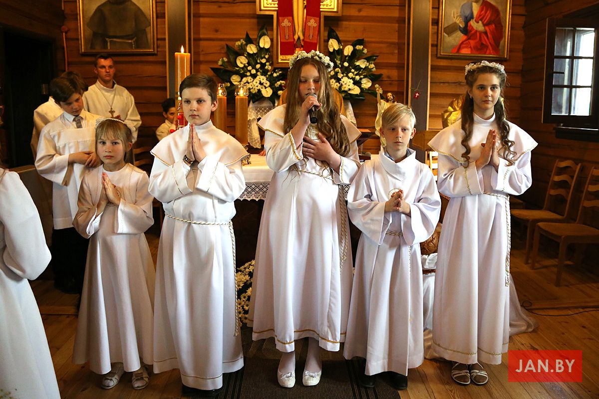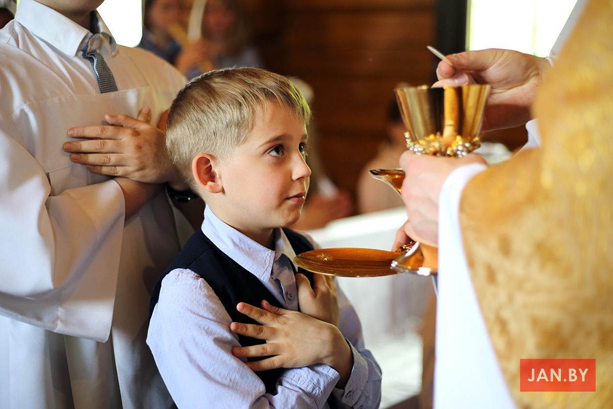 Да Святой Камуніі дзеці рыхтаваліся на працягу некалькіх гадоў катэхезы. Напярэдадні яны ўдзельнічалі ў адарацыі і прыступілі да першага ў сваім жыцці сакрамэнта пакаяння.
