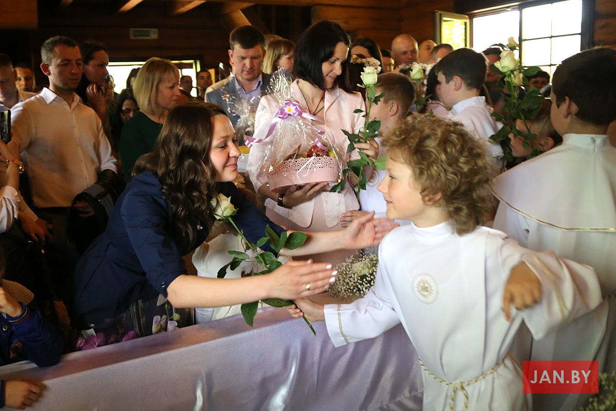 Акрамя душпастыраў і сёстраў, у гэтае свята дзяцей падтрымлівалі бацькі, хросныя і родныя, для якіх гэта падзея стала адметнай і хвалюючай. Мама аднаго з хлопцаў, Лілія Каплун, адзначыла: «Тое, што сёння адбываецца ў нашых сем’ях, цяжка перадаць словамі, бо Пан Езус прыйдзе і насыціць кожную частачку цела нашых дзяцей. Хачу пажадаць сёння, каб гэтыя дзеці ўзрасталі ў веры і гэтая падзея стала для іх новай адпраўной кропкай. Ведаем, што гэта не апошні сакрамэнт, да якога мы рыхтуем сваіх дзяцей».