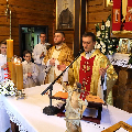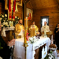 У працэсіі з дарамі быў прынесены прыгожа аздоблены трон, на якім будзе змяшчацца манстранцыя з Найсвяцейшым Сакрамэнтам. Гэта дар ад бацькоў першакамунійных дзяцей, выраз іх дбання пра прыгажосць літургіі ў нашай капліцы і ўдзячнасці Пану Богу.