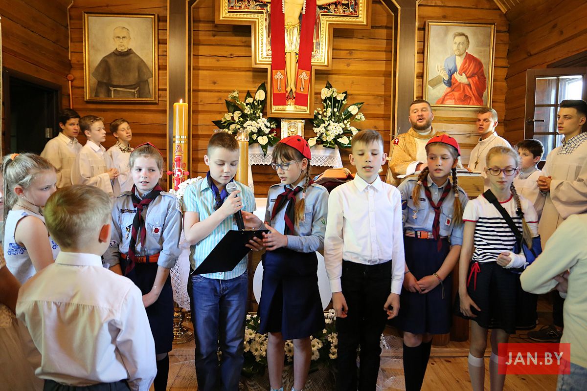 19 мая ў нашай парафіі адзначылі завяршэнне чарговага фармацыйнага года. Найперш дзеці сабраліся на Святой Імшы. Надвор’е спрыяла, таму дзяцей чакала вясёлая гульня пад назвай JAN.BY.MINSK на стадыёне каля школы.