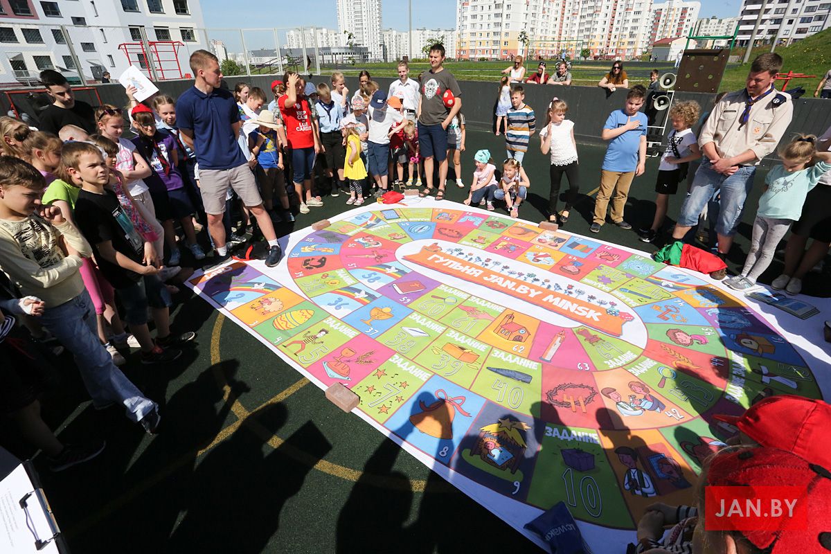 Усе дзеці падзяліліся на чатыры каманды: Ян, Марк, Мацвей і Лука. Падчас гульні дзеці выконвалі розныя дынамічныя заданні і адказвалі на пытанні пра жыццё Езуса і Марыі, праўды каталіцкай веры і Святую Літургію. З заданнямі ўсе ўдзельнікі справіліся без праблем, што асабліва цешыла сясцёр і катэхетаў. Некаторыя капітаны нават давалі датэрміновыя адказы. З невялікім адрывам перамог «Ян» – каманда імя евангеліста, які з’яўляецца заступнікам нашай парафіі. «Па назве зразумела, што ў іх адразу была перавага», — смяецца Вольга Пашкевіч.