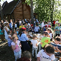 Якое ж свята без пачастунка? Да салодкага стала, які арганізавалі бацькі, першай падышла каманда, якая заняла апошнее месца. Такім чынам пробашч парафіі нагадаў дзецям словы евангеліста Лукі: «І вось будуць апошнія, якія стануць першымі, і будуць першыя, якія стануць апошнімі» (Лк 13:30).
