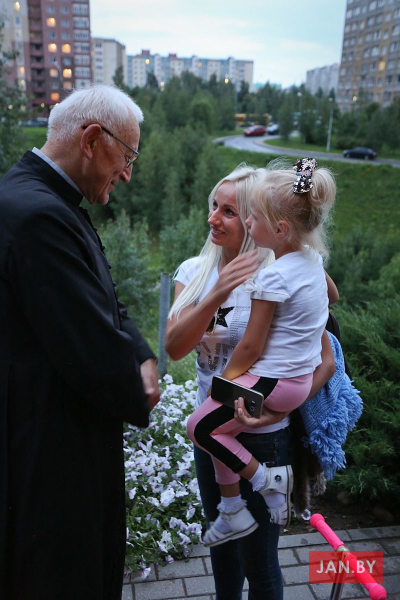 На святой Імшы прысутнічалі таксама і былыя парафіяне, якія спецыяльна прыехалі ў Мінск, каб разам маліцца і дзякаваць Богу за дар паклікання ксяндза Францішка. Цяпер святару 76 гадоў, ад 2014 года ён працуе ў Польшчы.
