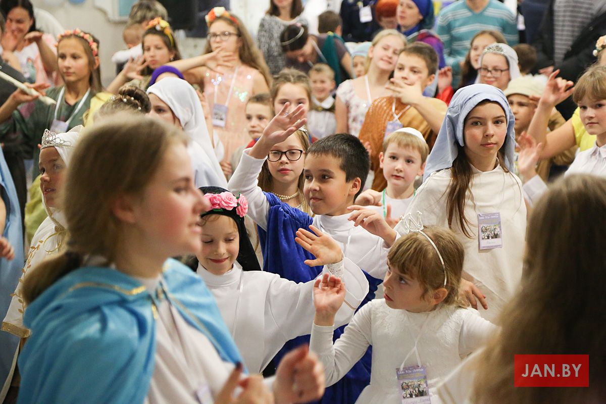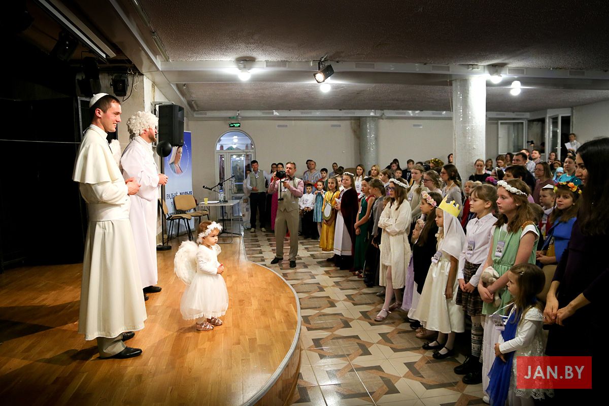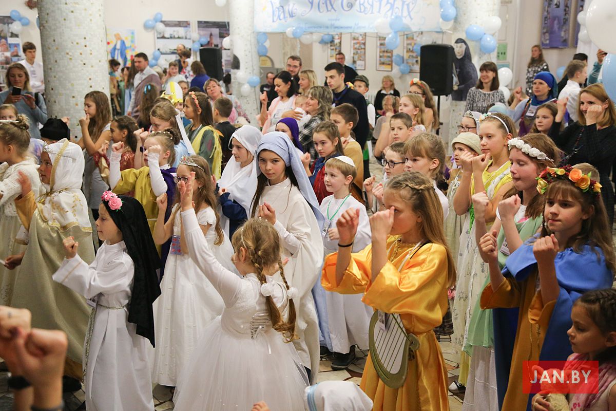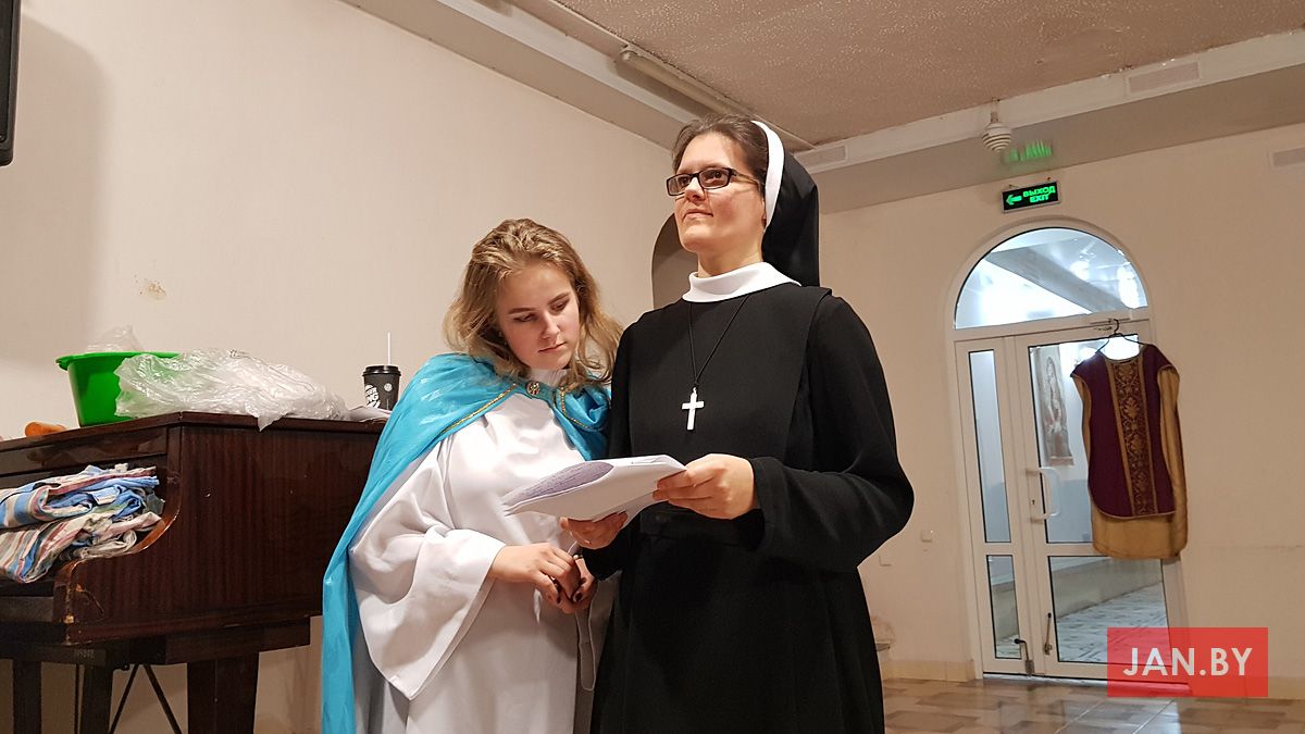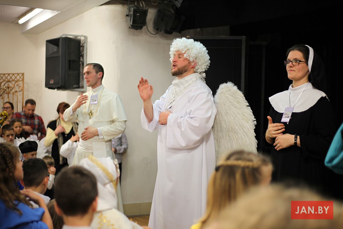 І вось ён — момант нараджэння ідэі, якую так важна патлумачыць дзецям — «Святасць праз вернасць». Перад вачыма паўстае постаць святога Максімільяна, сцэны з жыцця якога сталі асновай для нашага спектаклю. Закупка падарункаў, стварэнне сцэнарыя, пошук актораў, спробы рэалізацыі ідэі на сцэне, выпрабаванне гукаапаратуры і праца над расстаноўкай святла — гэта толькі некаторыя этапы шматдзённай працы арганізацыйнай групы. Уся каманда зноў і зноў збіраецца разам, каб прыдумаць конкурсы для дзяцей, размеркаваць працу, падрыхтаваць бэйджы, дэкарацыі і рэквізіт. І увесь час працягваюцца рэпетыцыі спектакля.