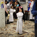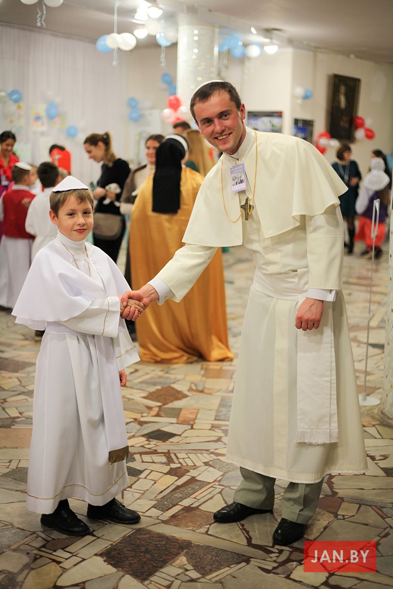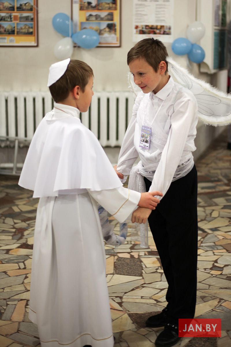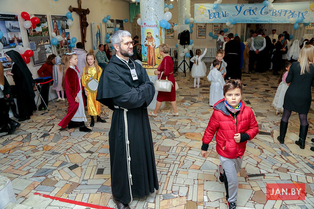 І вось, доўгачаканая нядзеля. Пасля святой Імшы акторы спяшаюцца на апошнюю генеральную рэпетыцыю. Моладзь заканчвае прыгатаванне залы, адказныя займаюцца арганізацыяй салодкага стала. Ксёндз Уладзімір збірае ўсіх, каб благаславіць на гэтае служэнне. Хвалюючы момант — пачатак! Першыя ўдзельнікі ўжо праходзяць рэгістрацыю. Па традыцыі іх гасцінна сустракае Анёл Юзік, менавіта ў гэтым вобразе парафіяне звычайна бачаць свайго пробашча на балі. Вікарыя нашай парафіі неадразу можна пазнаць — задумваюцца і дарослыя, і дзеці. Безумоўна, яму вельмі пасуе касцюм святога папы Яна Паўла ІІ, што адзначаецца шматлікімі кампліментамі. Жадаючых атрымаць фотаздымак з сястрой Клярай вельмі шмат — на час Балю яна пераўтварылася ў благаслаўлёную Францішку. Не абмінаюць увагай і сястру Агнешку, якая невыпадкова для свята абрала вобраз святой Агнешкі. Нельга не адзначыць касцюмы шматлікіх удзельнікаў: з кожным годам яны становяцца ўсё больш цікавымі і тэхнічна складанымі. Творчая рэалізацыя візіі святога бачная праз вопратку кожнага дзіцяці. Відавочна, што без дапамогі бацькоў не абышлося, і гэта насамрэч вельмі радуе. Чым прываблівае дзіця той ці іншы святы ў некаторых сітуацыях можна толькі здагадвацца, бо шмат мучанікаў можна сустрэць на нашым Балі, многіх святых з вельмі складанымі лёсамі. Але менавіта разнастайнасць святых заўсёды з'яўляецца асаблівасцю парафіяльнага Балю.