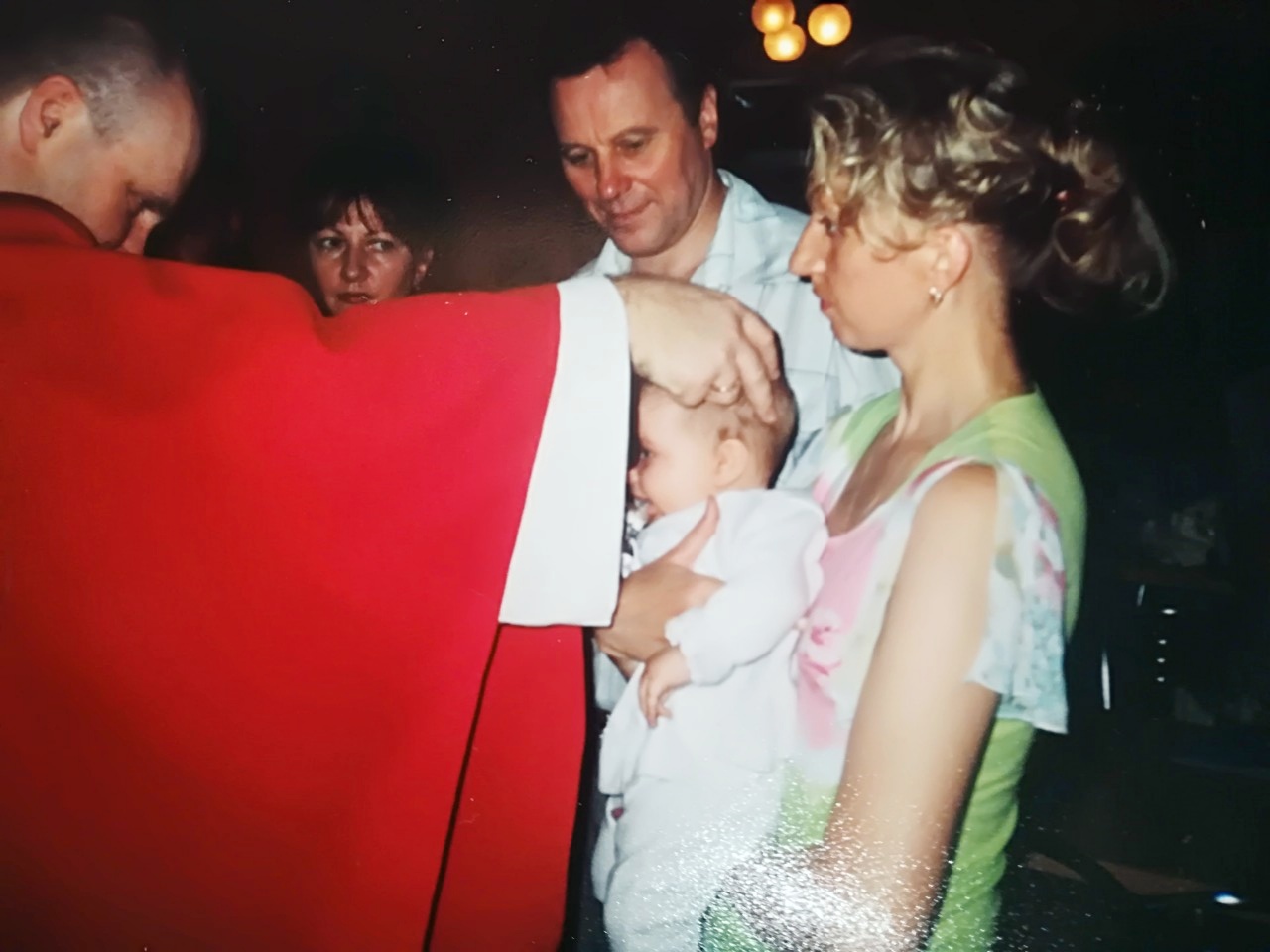 Мама нашай гераіні Ірына Лукомская распавядае пра нараджэнне дачкі: "З'яўленне Ані было падарункам ад Бога. 1 студзеня 2006 г. мы з мужам узялі шлюб, які стаўся першым шлюбам у парафіі ў Гатава. Праз тры месяцы мы даведаліся, што народзіцца трэцяе дзіця. На той час Антону было 11 год, а Вове амаль 9".